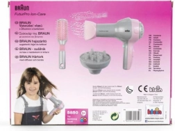 Phon per bambini Braun con diffusore e spazzola consente ai piccoli parrucchieri di acconciare i capelli come dei professionisti. Non fornisce calore, quindi è sicuro per i bambini.