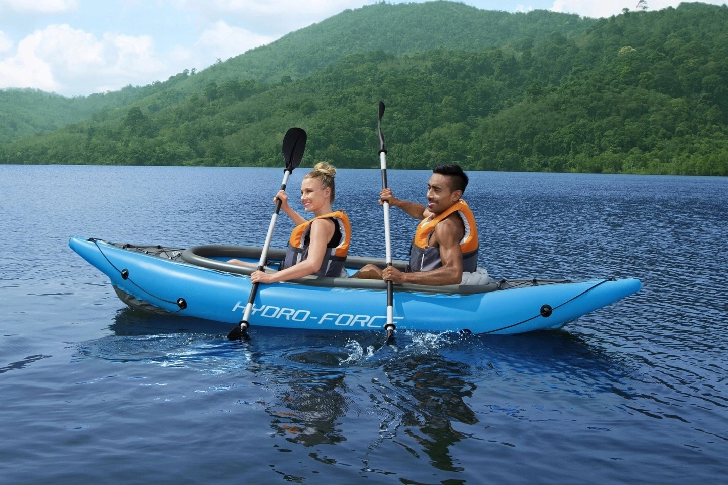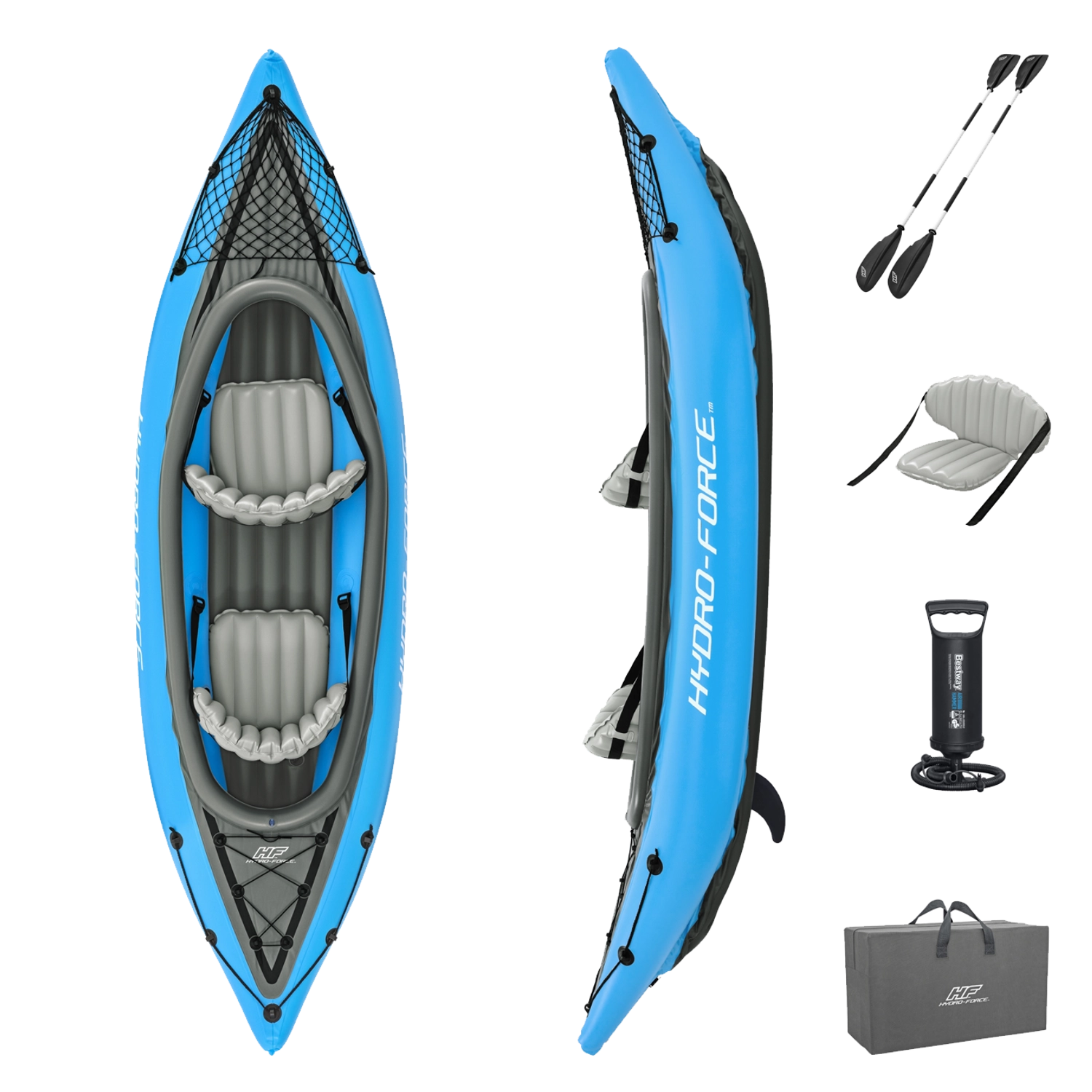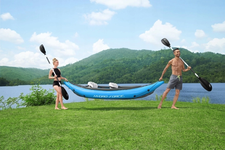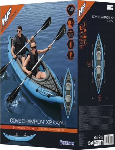 Il kayak gonfiabile Hydro‑Force Cove Champion X2 è ideale per pagaiate ricreative su laghi e fiumi tranquilli. Nella confezione trovi tutto il necessario: 2 pagaie a doppia pala, pompa manuale Air Hammer, 2 sedili gonfiabili regolabili con schienale e borsa da trasporto. La robusta struttura multistrato con pavimento gonfiabile rigido assicura stabilità e sicurezza in acqua.