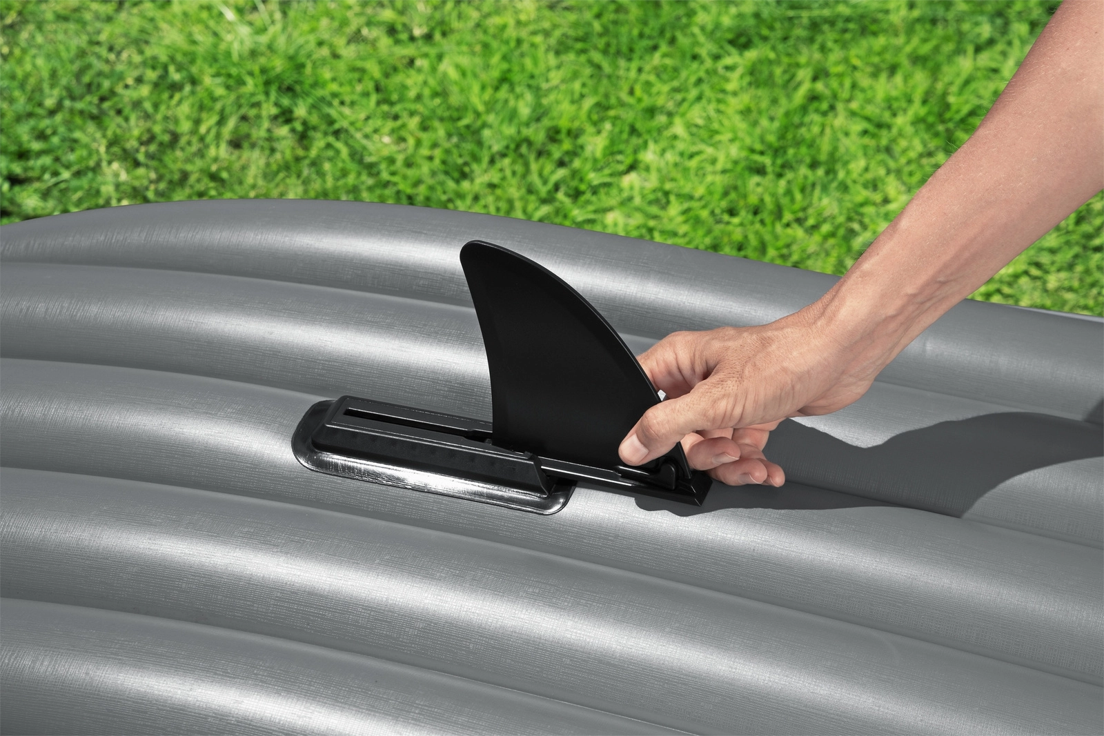 Installa la pinna per mantenere una rotta stabile su acque calme e con brezza leggera. Il montaggio e lo smontaggio a scorrimento consentono di riporre il kayak in modo compatto.