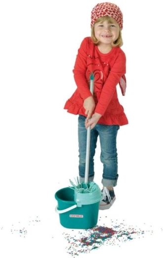 I bambini possono provare a “passare il mocio” come i grandi: il secchio ha uno strizzatore integrato, il mop è leggero e comodo da impugnare. Ideale per i giochi di pulizia e per sviluppare la coordinazione.