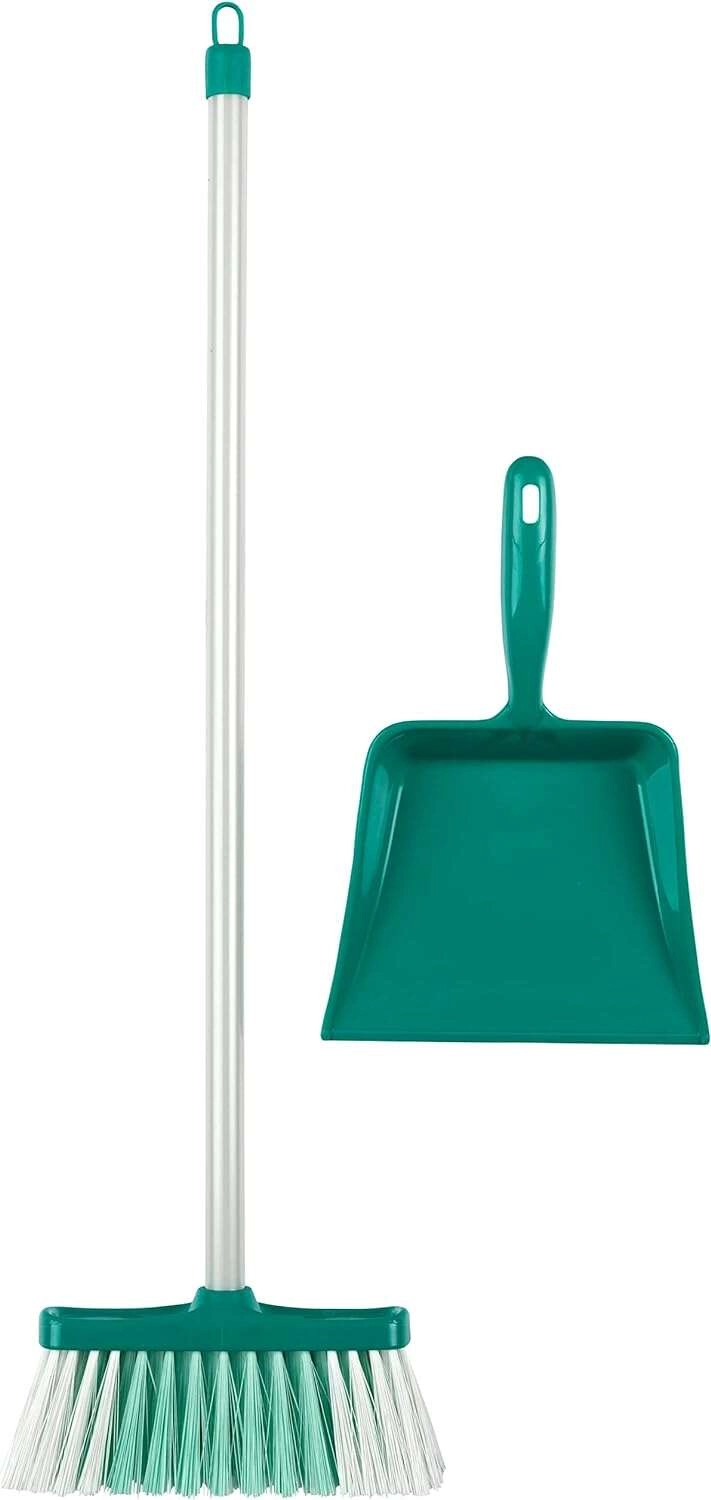 Il manico lungo della scopa e le setole morbide permettono ai bambini di imitare in sicurezza lo spazzare. Lo spazzolino con paletta aiuta a “raccogliere” briciole e polvere.