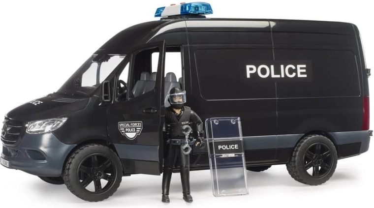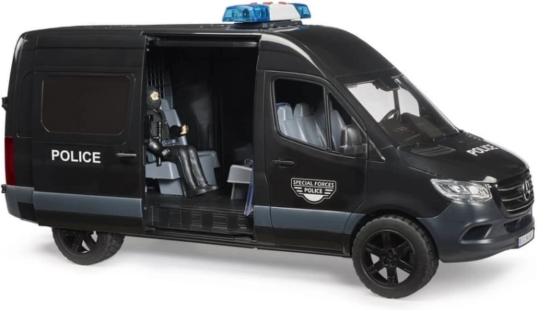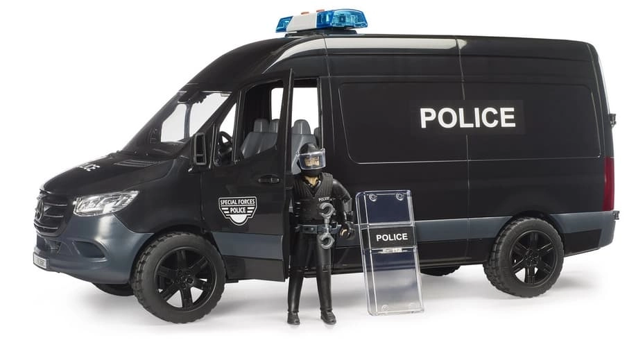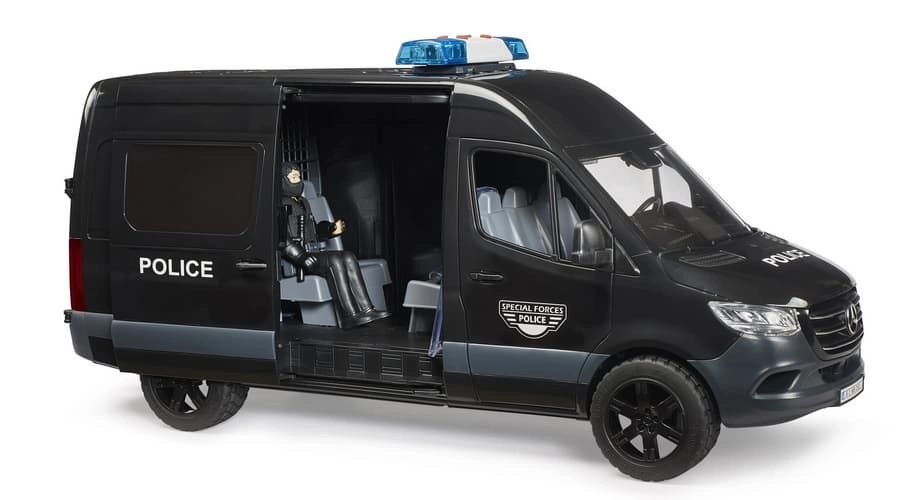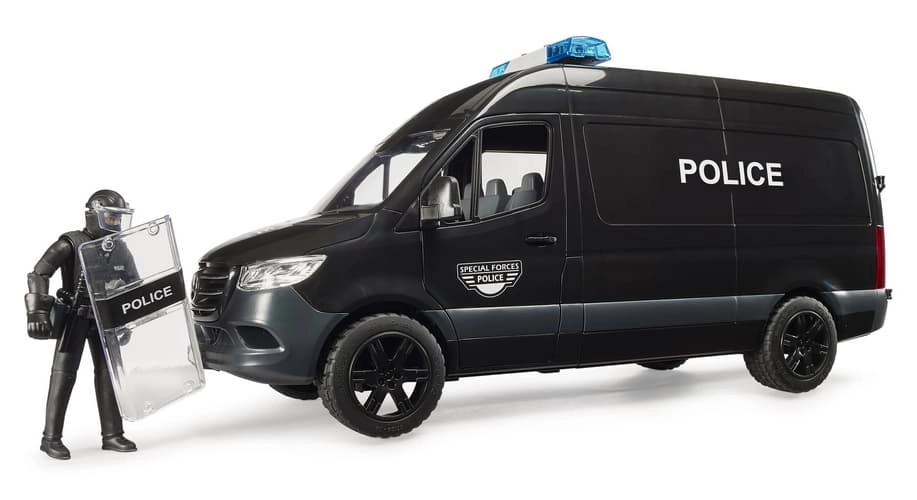 Parti all’azione con l’iconico Mercedes‑Benz Sprinter di BRUDER e la mini‑figura dell’agente antisommossa. Dettagli realistici, porta laterale scorrevole, cabina apribile e cella integrata trasformano il gioco in una missione di polizia avvincente. La struttura resistente in plastica ABS sopporta anche un gioco intenso e sviluppa creatività e motricità fine dei bambini.