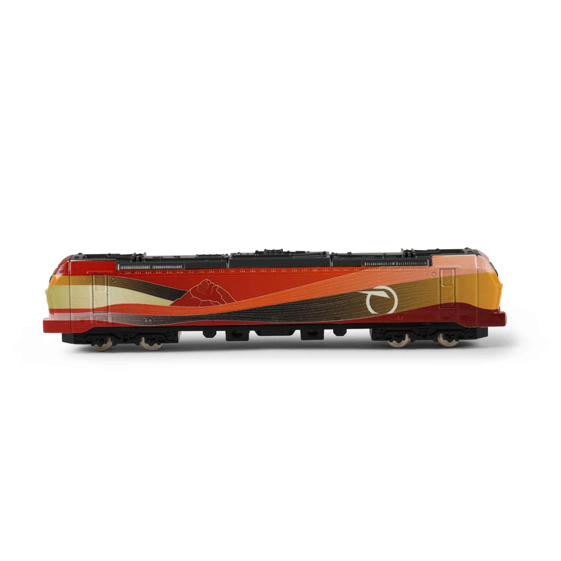 La locomotiva scorre liberamente – basta una spinta e si muove su superfici piane, senza necessità di alimentazione.
