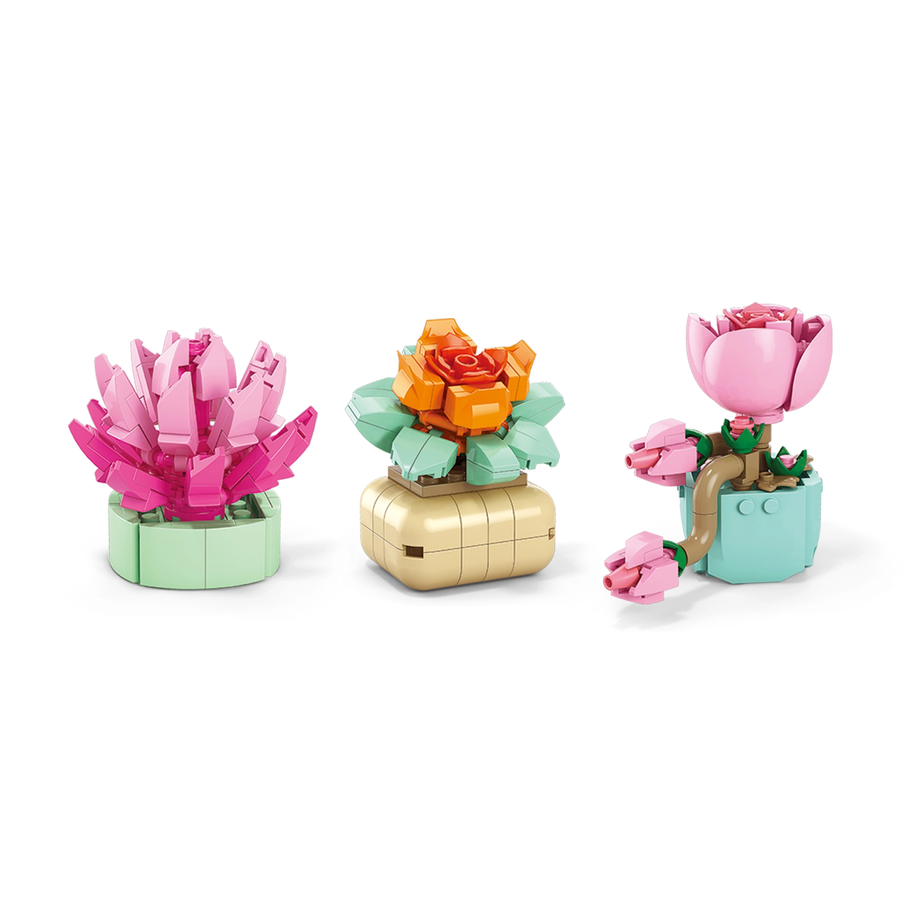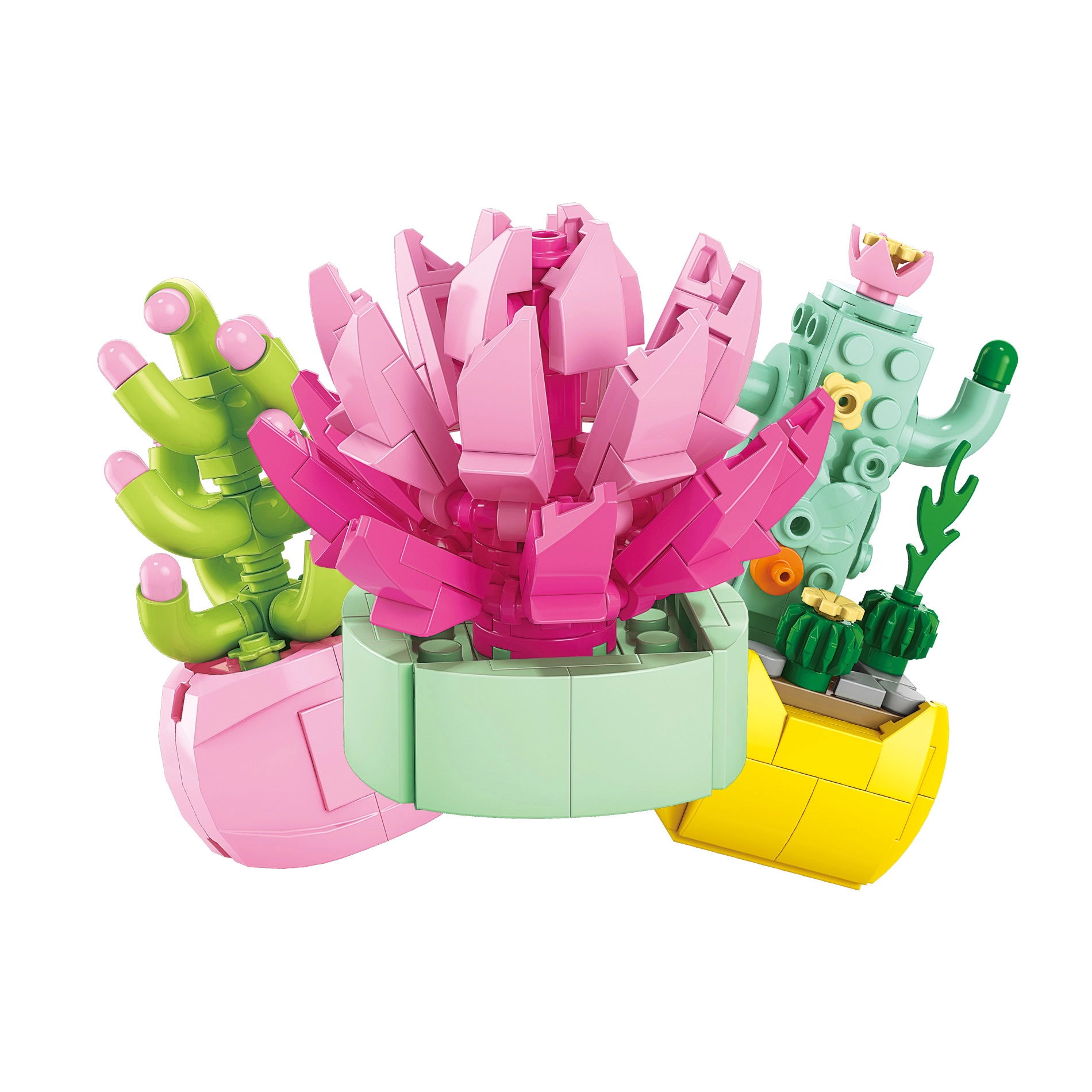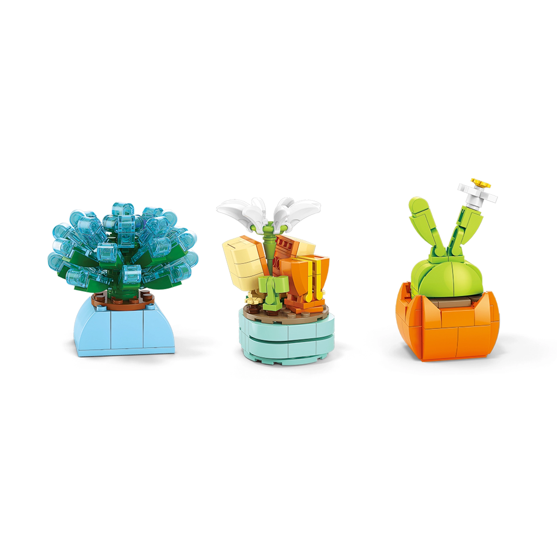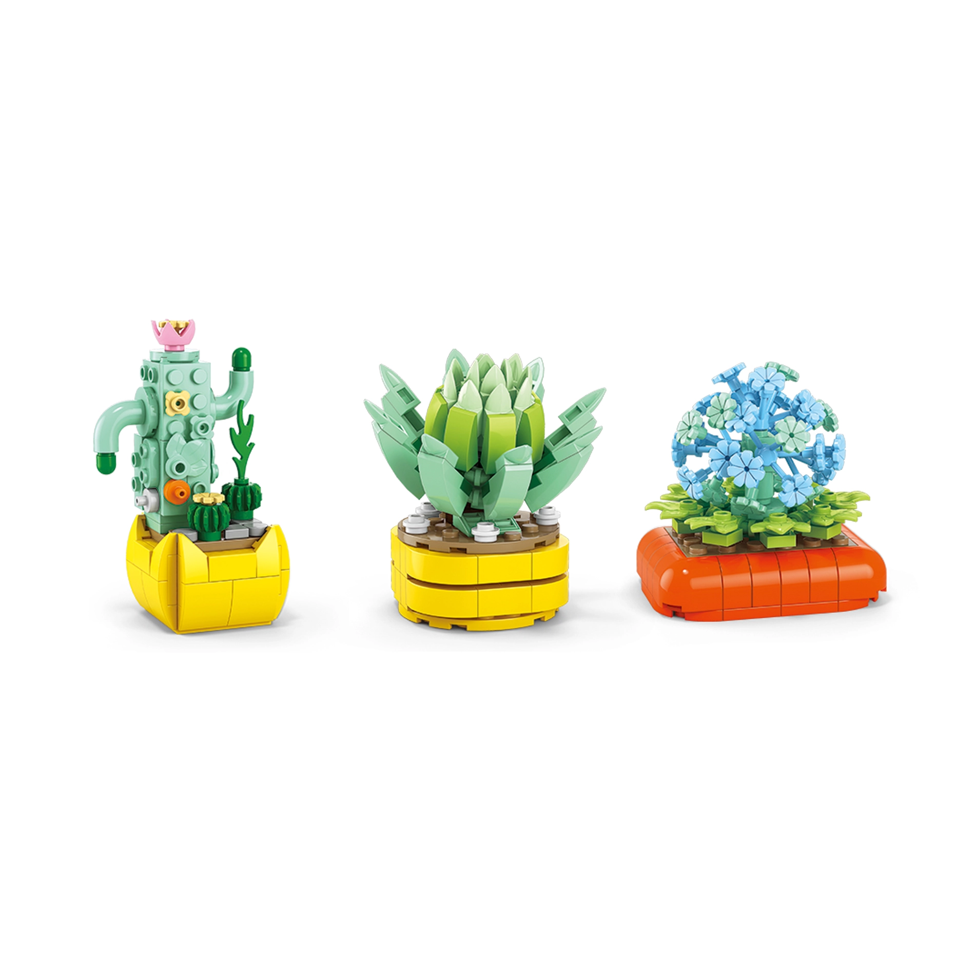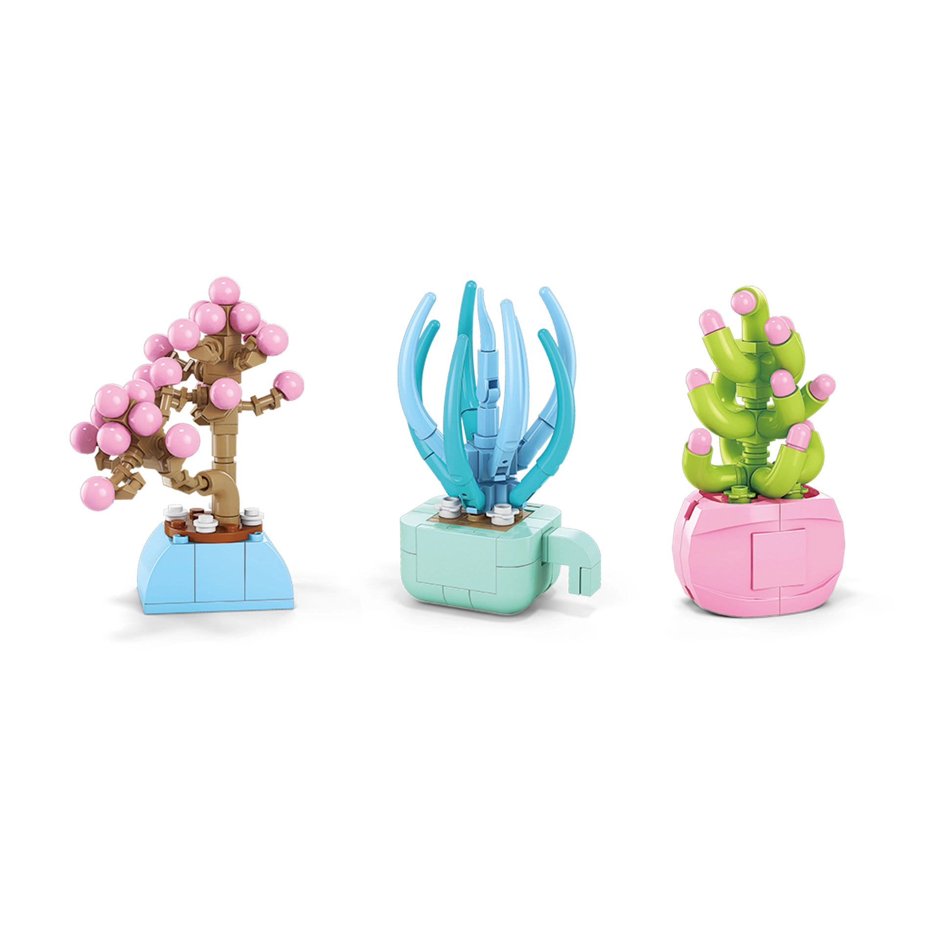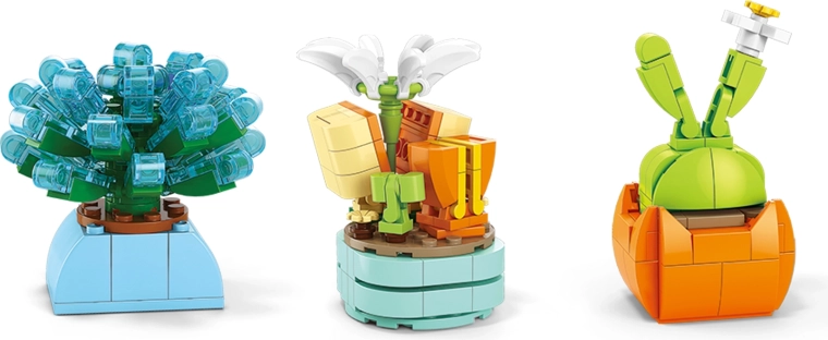 Crea il tuo angolo verde senza innaffiare e senza pensieri. Con questo set assemblerai fiori colorati, succulente e piccole bonsai che abbelliranno qualsiasi interno. I modelli assemblati sono stabili, dettagliati e pronti per essere esposti.