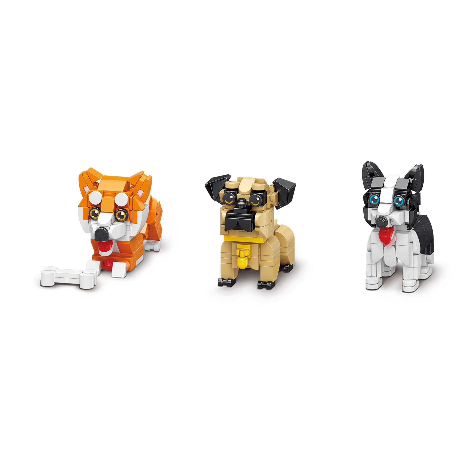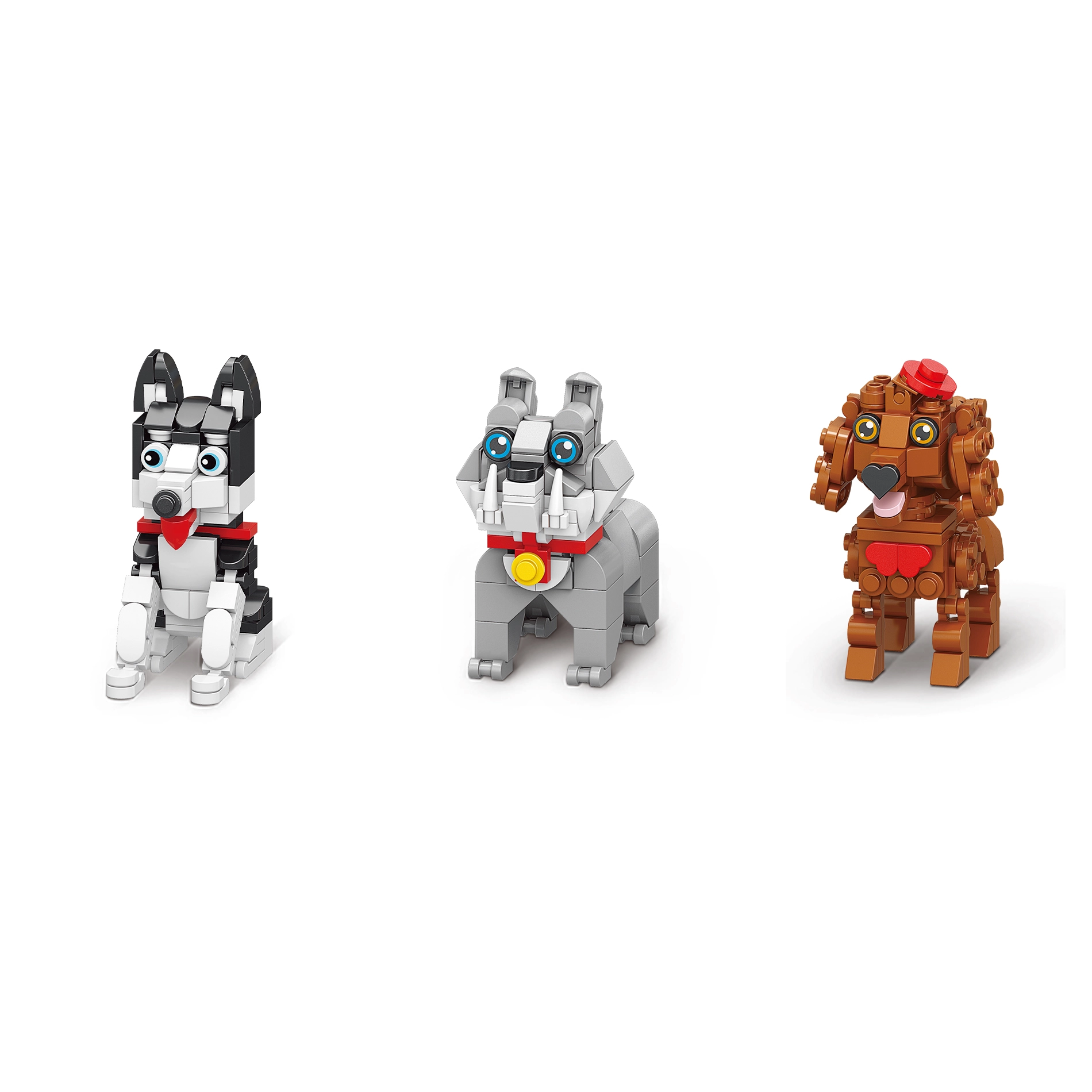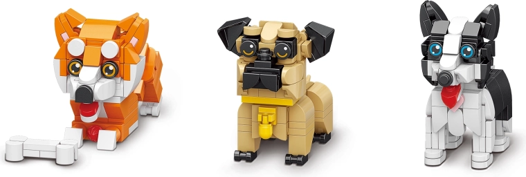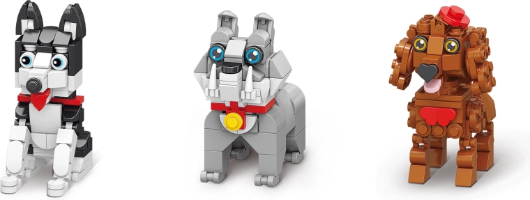 Scopri il mondo dei mini amici a quattro zampe che costruirai tu stesso con mattoncini di qualità. Grazie al design intelligente, i cagnolini hanno teste e zampe mobili, occhi espressivi e dettagli divertenti che donano personalità. Ogni modello è compatto, perfetto per i viaggi, la scuola e la mensola.