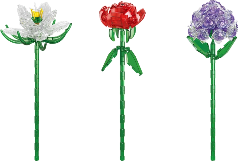 Grazie alla compatibilità con altri set di costruzioni puoi aggiungere facilmente altri elementi, regolare la lunghezza degli steli, orientare le foglie e creare esattamente le composizioni che preferisci. Il set è adatto a bambini dai 6 anni – sviluppa motricità fine, creatività e pazienza.
