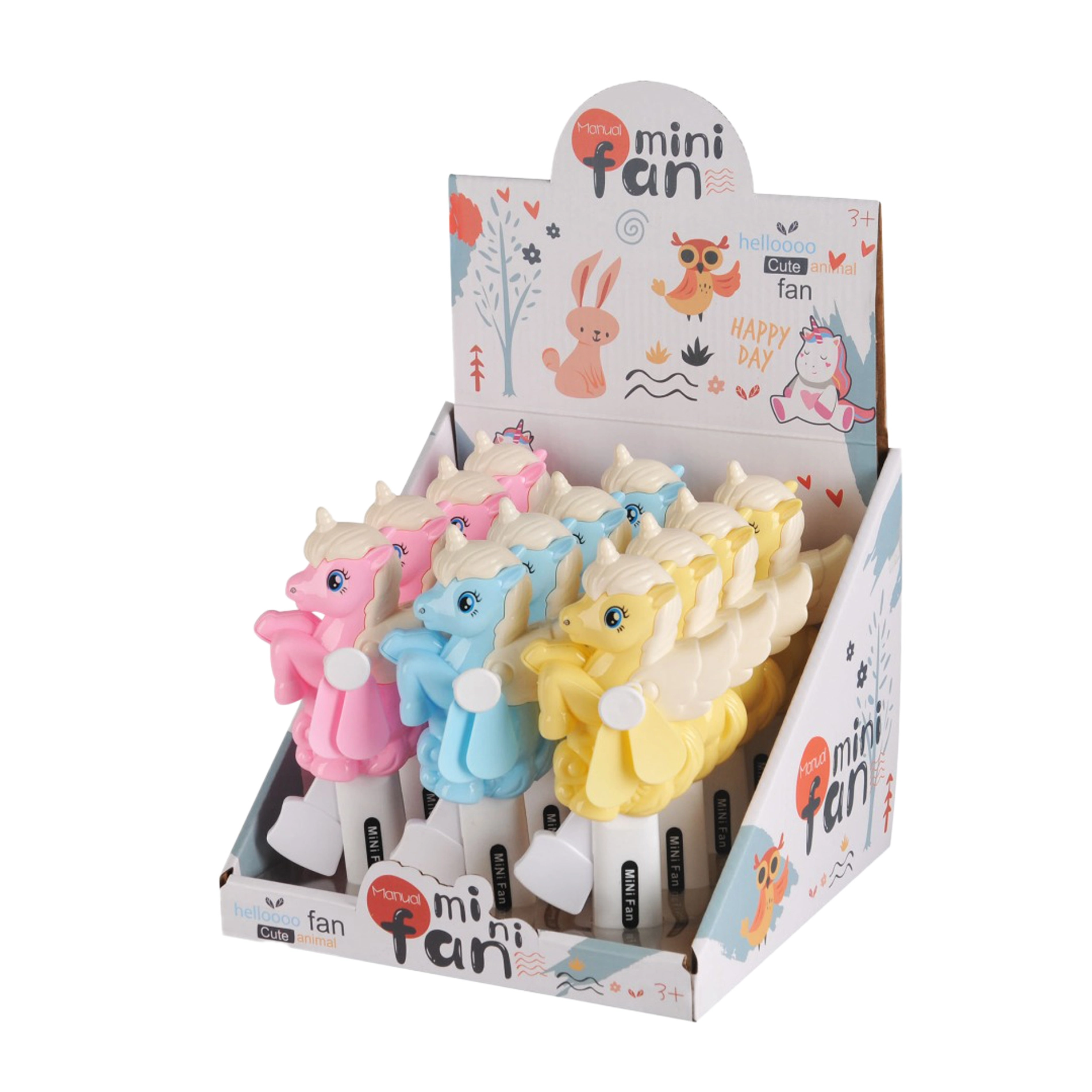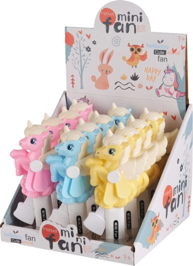 Ventilatore manuale divertente e pratico a forma di unicorno per un rapido raffrescamento ovunque e in qualsiasi momento. Senza batterie, con azionamento meccanico a volano – basta premere la leva e l’elica si mette subito in moto. Ideale per le calde giornate estive per bambini e adulti.