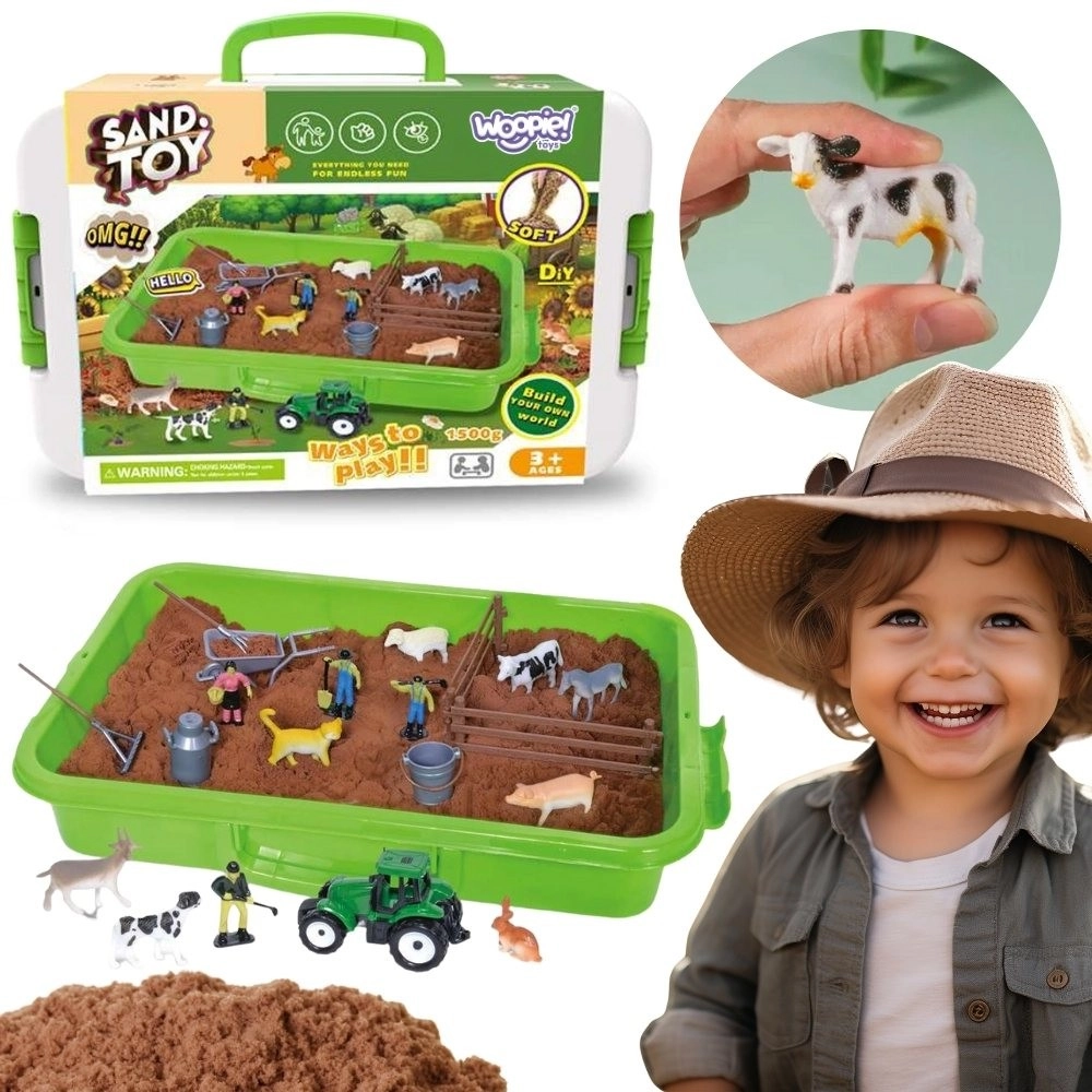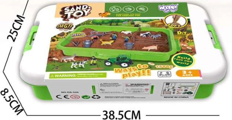 Crea la tua fattoria e sviluppa l’immaginazione dei bambini con il set Woopie riccamente accessoriato. La sabbia cinetica è piacevole al tatto, non appiccica, mantiene facilmente la forma e non si secca, ideale quindi per ore di gioco. La pratica valigetta verde con manico funge da sabbiera portatile e contenitore – dopo il gioco, metti tutto in ordine con facilità.