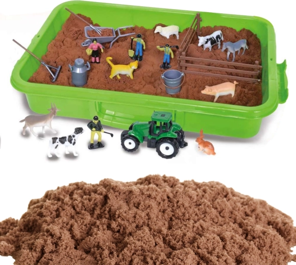 Scopri il divertente mondo della fattoria con il set creativo di sabbia cinetica. Nella pratica valigetta trovi fino a 1500 g di sabbia morbida e modellabile di colore marrone, un trattore verde, figurine di contadini e animali da fattoria. La valigetta funge anche da vasca da gioco, che mantiene l’ordine e permette un gioco pulito, sensoriale e creativo a casa e in viaggio.
