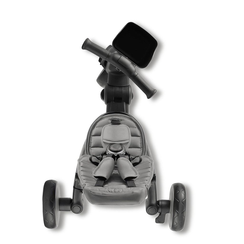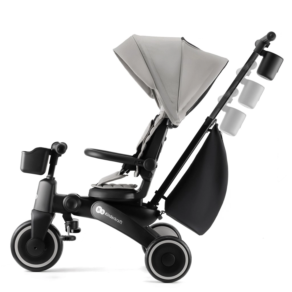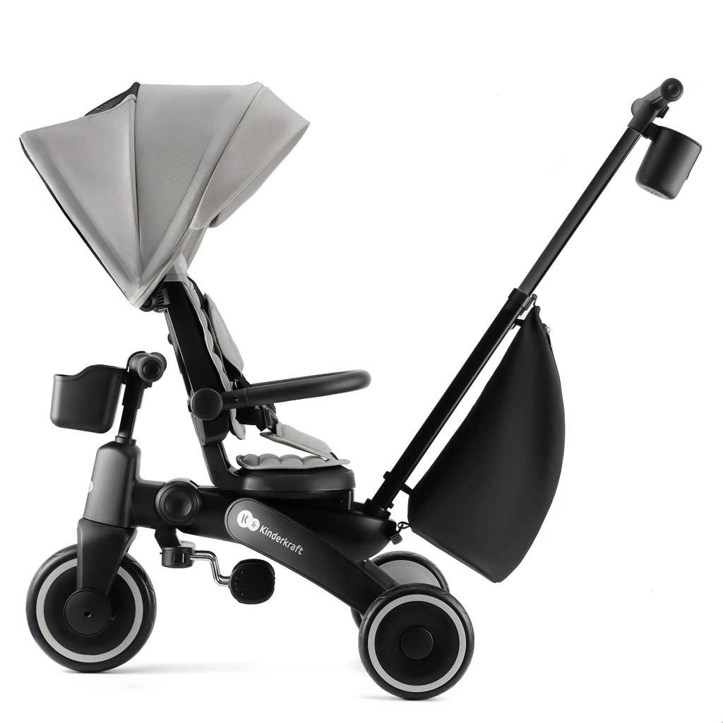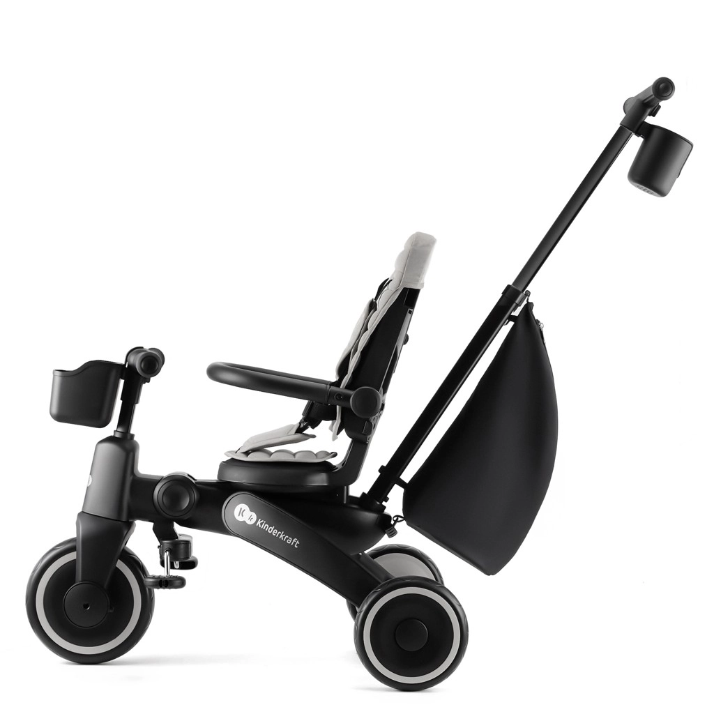 Inclusa anche una capiente sacca a coulisse per giochi e piccoli oggetti, un campanello e il maniglione per il genitore per un controllo agevole. Con il peso contenuto di 7,2 kg, il triciclo è facile da maneggiare in casa e in viaggio.
