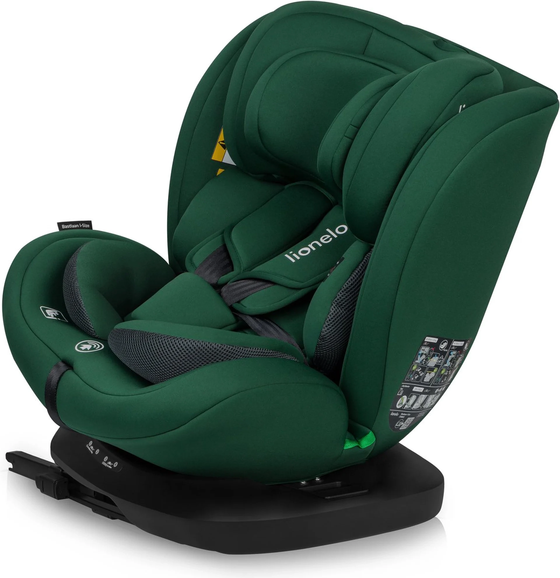 Il seggiolino auto Lionelo Bastiaan i-Size è girevole 4 in 1 per bambini da 40 a 150 cm, conforme alla norma ECE R129 i-Size e garantisce massima sicurezza e comfort in viaggio. Offre rotazione a 360°, installazione con ISOFIX e Top Tether oppure con cintura a 3 punti, protezione laterale e memory foam nel poggiatesta. Cresce con il bambino, consente RWF fino a 105 cm e più posizioni di inclinazione per dormire e sedere comodamente.