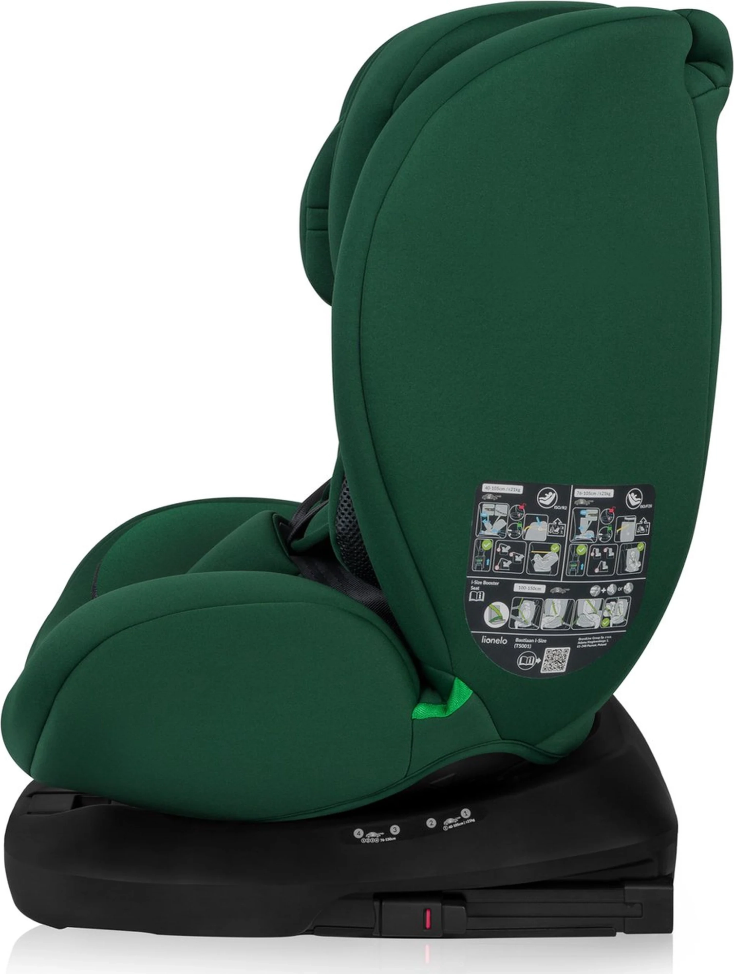 Lionelo Bastiaan i-Size offre un trasporto sicuro e confortevole dei bambini dalla nascita fino a 150 cm. Grazie alla certificazione ECE R129 i-Size ha superato rigorosi test d’urto frontali, posteriori e laterali. Il meccanismo girevole a 360° facilita il posizionamento del bambino e il passaggio tra la posizione contro il senso di marcia (RWF) e nel senso di marcia (FWF). ISOFIX con connettori e Top Tether garantiscono un’installazione salda e intuitiva.