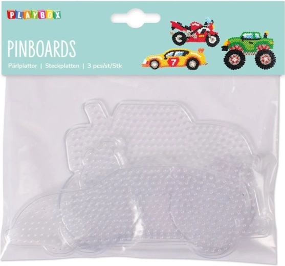 Basi trasparenti PLAYBOX per perline da stirare con diametro di 5 mm che facilitano la creazione di motivi di auto e altre immagini. Sono resistenti, riutilizzabili e grazie alla trasparenza consentono un facile utilizzo con le sagome a casa, a scuola e nei laboratori creativi.