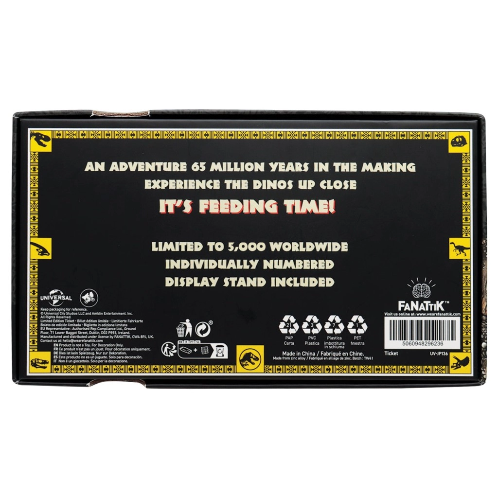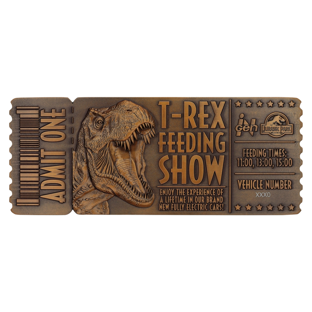Dettagli decorativi, come data e luogo dell’evento stilizzati, conferiscono al biglietto la credibilità di un vero pass cinematografico. Grazie alle dimensioni compatte lo riponi facilmente nel portafoglio, in una scatolina o su uno scaffale. È un regalo perfetto per gli appassionati della saga dei dinosauri, un ottimo complemento ad altri articoli con licenza e un pezzo di spicco per la collezione.