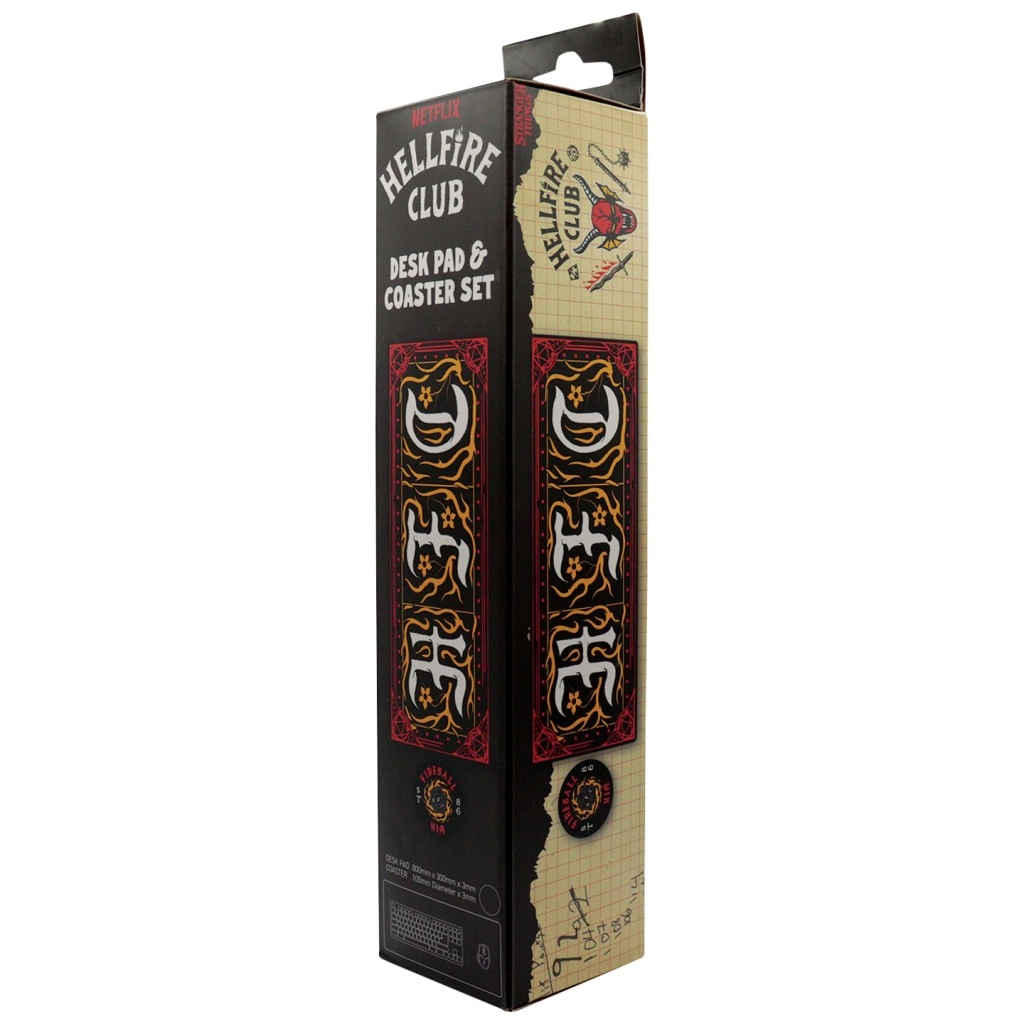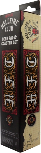 Elementi a contrasto nero-rosso, scritta Hellfire Club e iconografia della serie STRANGER THINGS donano alla tua scrivania un carattere deciso.