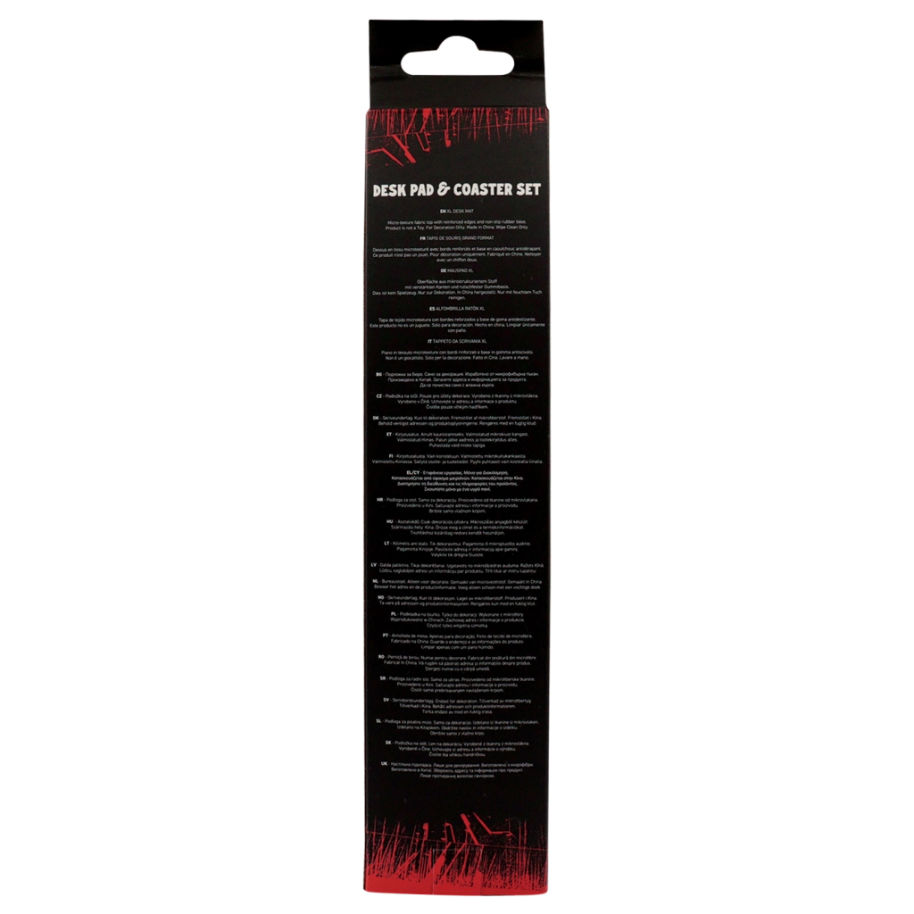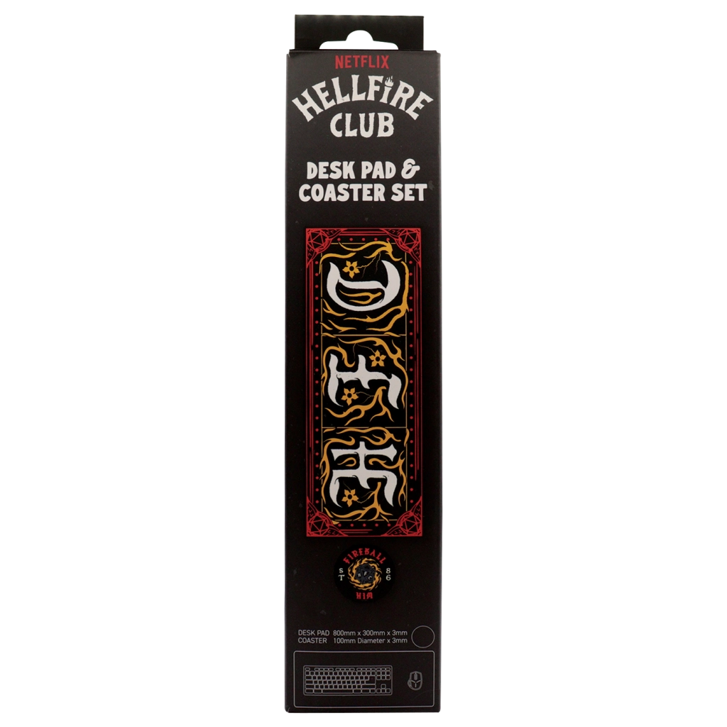 Eleva il tuo angolo di gioco o di lavoro con l’iconico set STRANGER THINGS Hellfire Club. Il tappetino da scrivania rettangolare offre una superficie morbida ma resistente per mouse, tastiera e accessori, proteggendo al contempo il tavolo dai graffi. Il sottobicchiere rotondo con lo stesso motivo mantiene le bevande a portata di mano senza lasciare aloni.