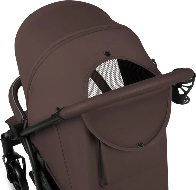 La pratica cappottina XXL con UPF 50+ e finitura idrorepellente protegge dal sole e dalla pioggerella. La chiusura rapida, il capiente cestello portaoggetti e il portabibite semplificano l’uso quotidiano. La sicurezza è garantita da cinture a 5 punti e da un freno efficace, mentre coprigambe e zanzariera ne ampliano l’utilizzo in ogni stagione.