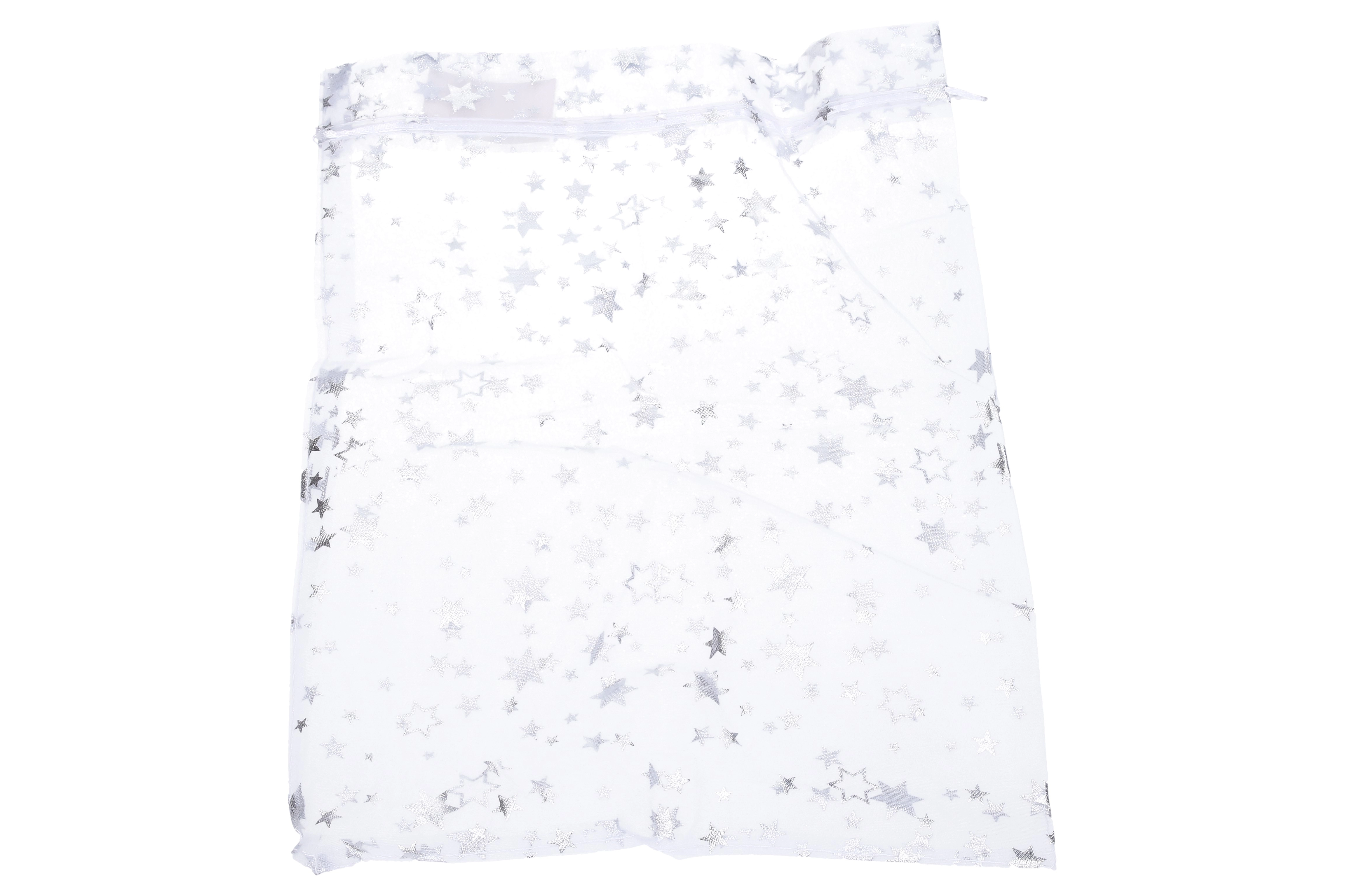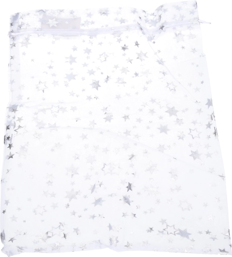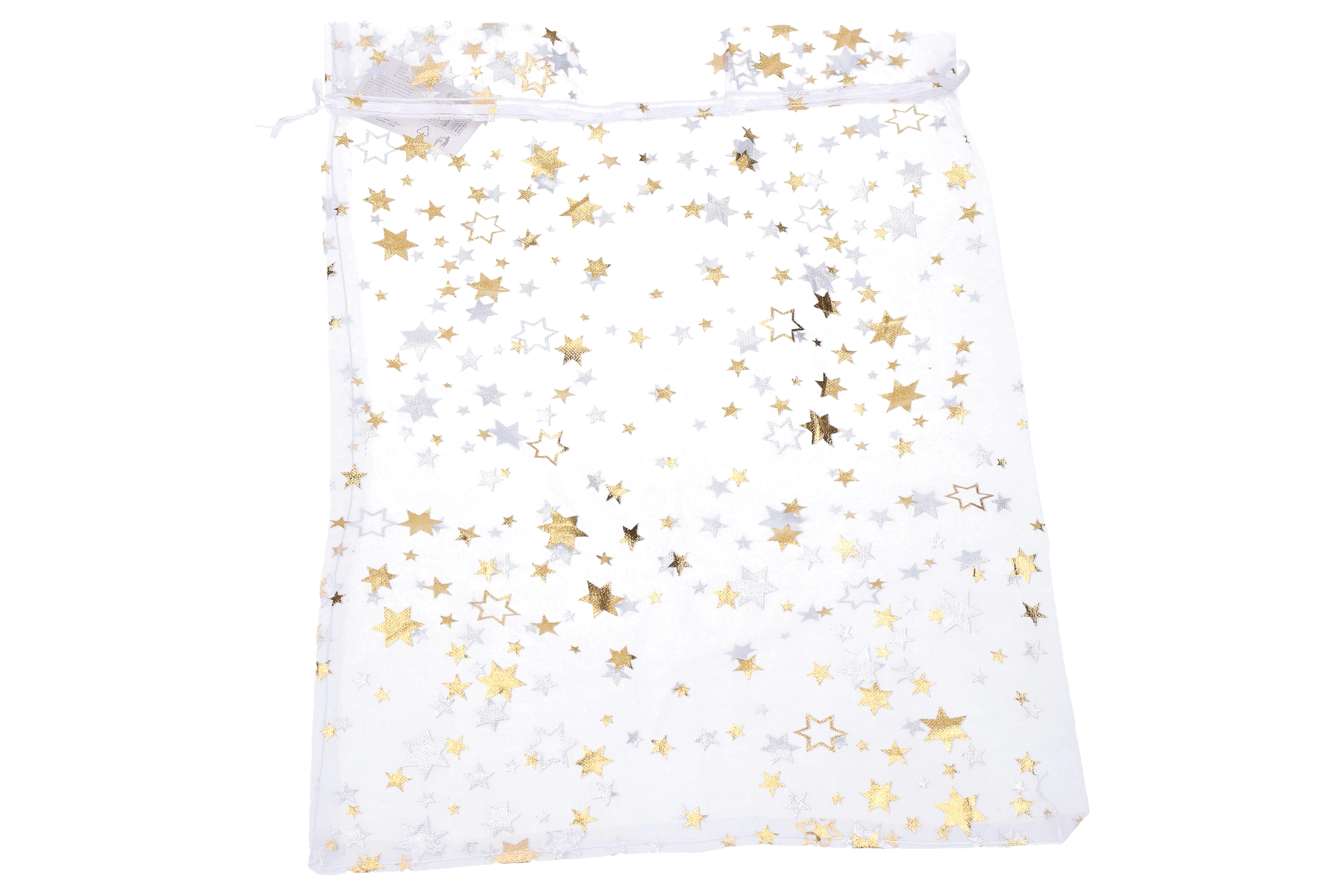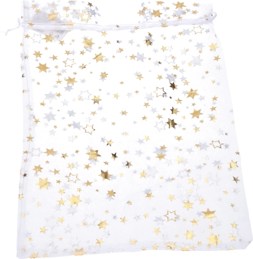 Eleganti sacchetti in organza con stelle, misura 17 × 23 cm, ideali per confezioni regalo, gioielli, piccoli souvenir o pensierini natalizi. Il tessuto trasparente con stelle metalliche e cordino a coulisse crea un effetto festoso e dona stile ai tuoi regali.