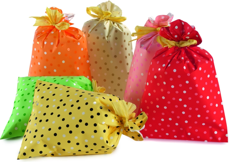 Pratico e decorativo sacchetto di cellophane di dimensioni 16 × 25 cm con allegro motivo a pois. Ideale per confezioni regalo, dolciumi, piccoli regali o bomboniere. Disponibile in cinque varianti di colore per un facile abbinamento al resto della decorazione.