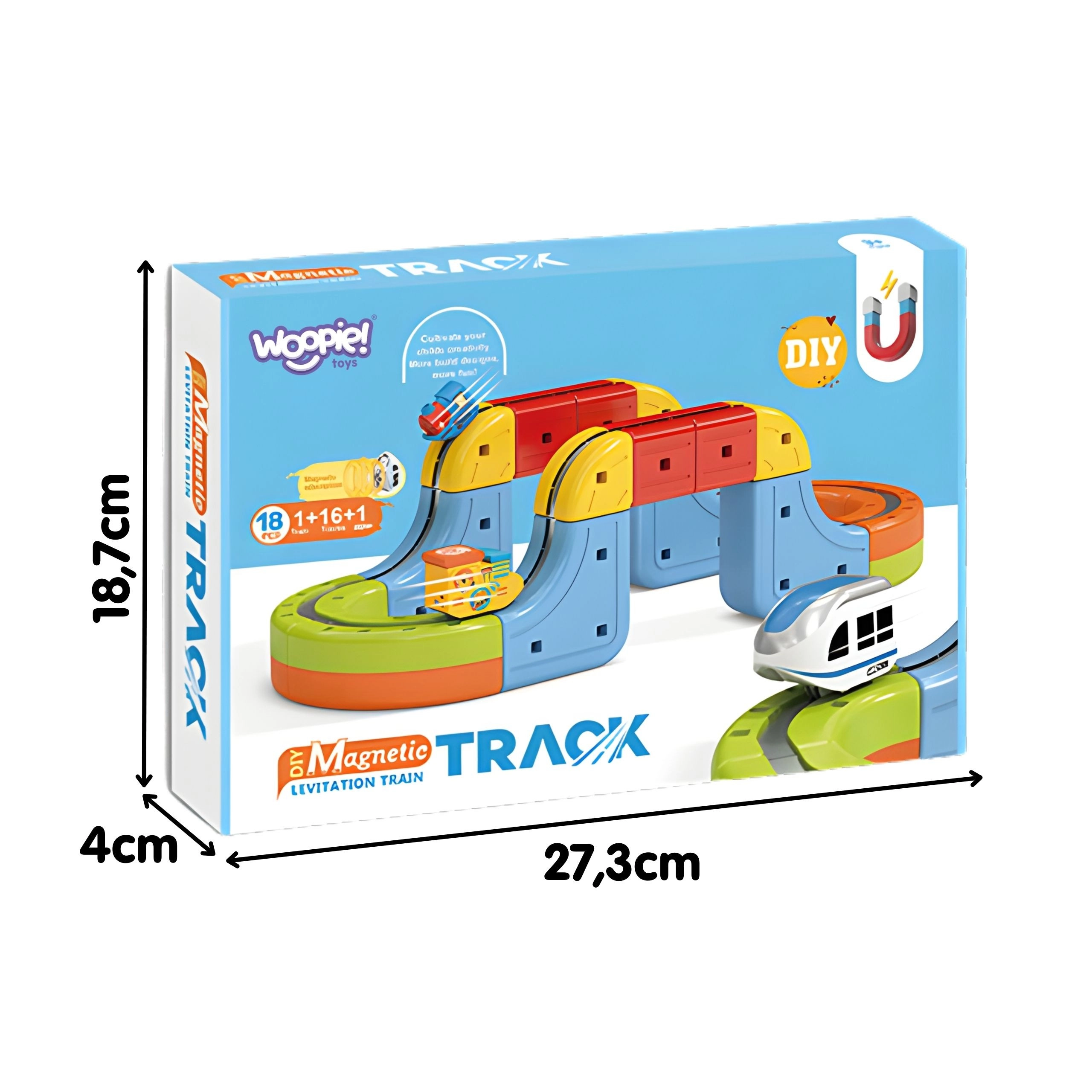 Scopri la magia del magnetismo e costruisci la tua pista antigravitazionale con il set WOOPIE. Questo set da 18 pezzi permette di creare percorsi folli e tortuosi, lungo i quali il veicolo, grazie a un innovativo sistema magnetico, viaggia in modo sicuro anche a testa in giù. Montaggio facile, alimentazione via USB e ore di divertimento creativo senza cambiare batterie.