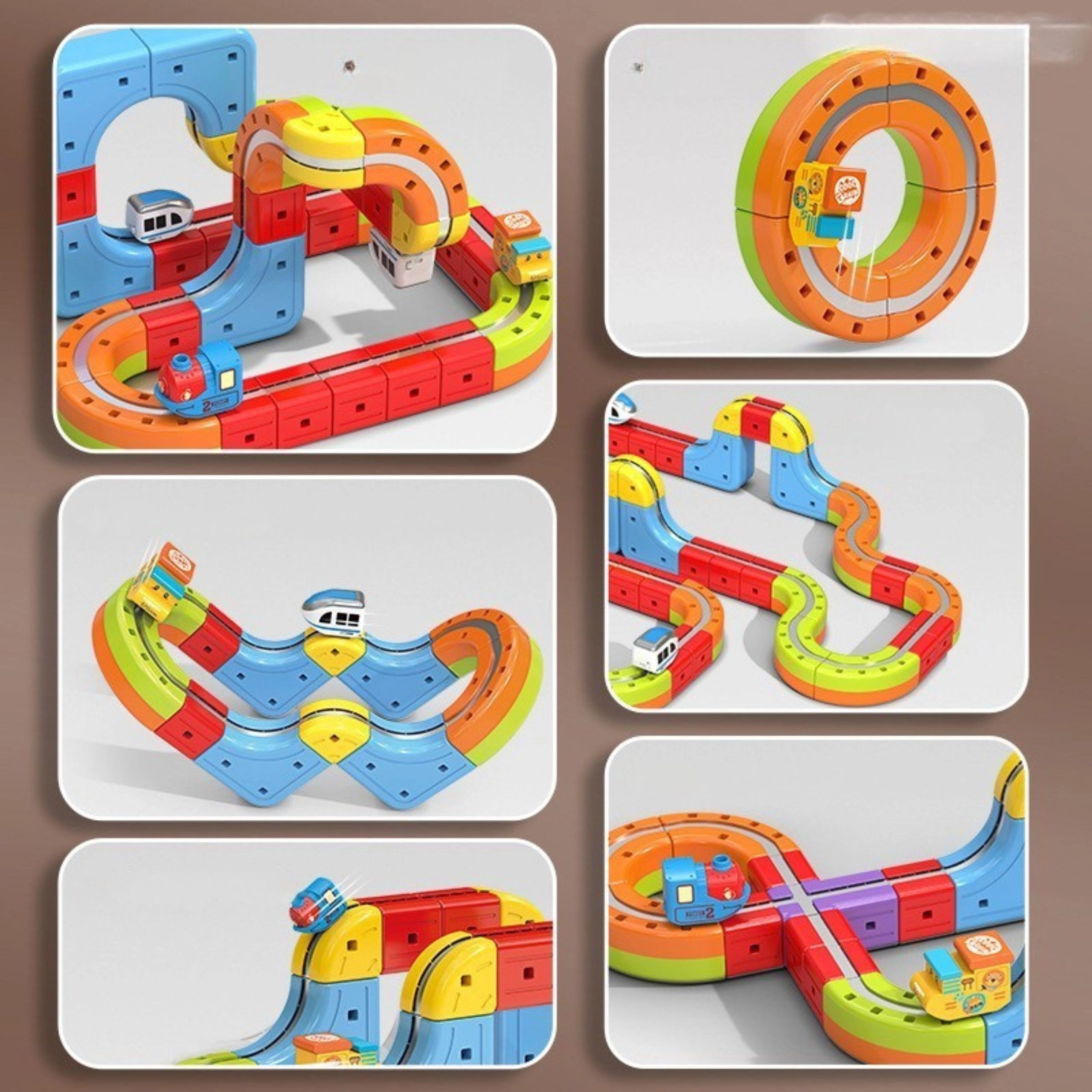 - Costruzione creativa – combina pezzi colorati e crea tracciati originali.