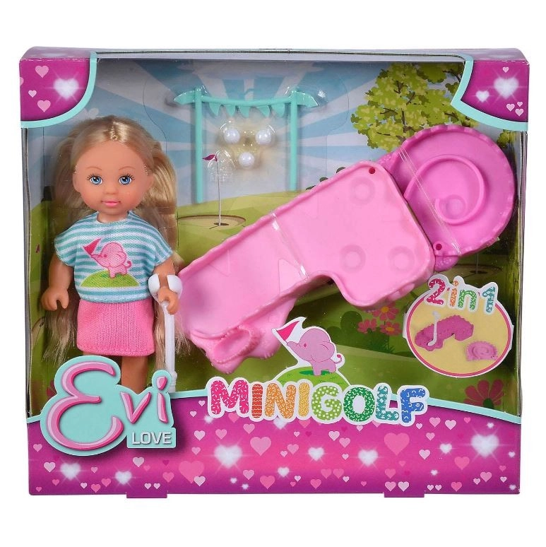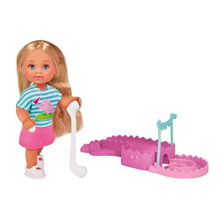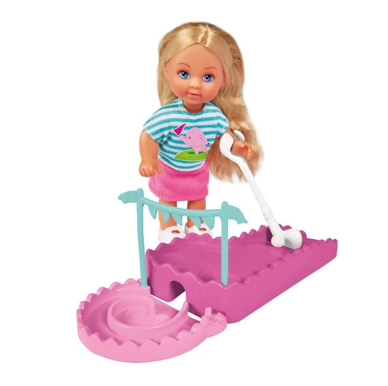 Scopri il divertente mondo dello sport con la bambola Evi e il suo set da minigolf. La graziosa bambola bionda con articolazioni mobili indossa un outfit sportivo alla moda e arriva con mazza da golf, pallina e mini campo, così i bambini possono godersi giochi di ruolo e gioco attivo. Il gioco sviluppa fantasia, creatività e abilità sociali durante il divertimento quotidiano.