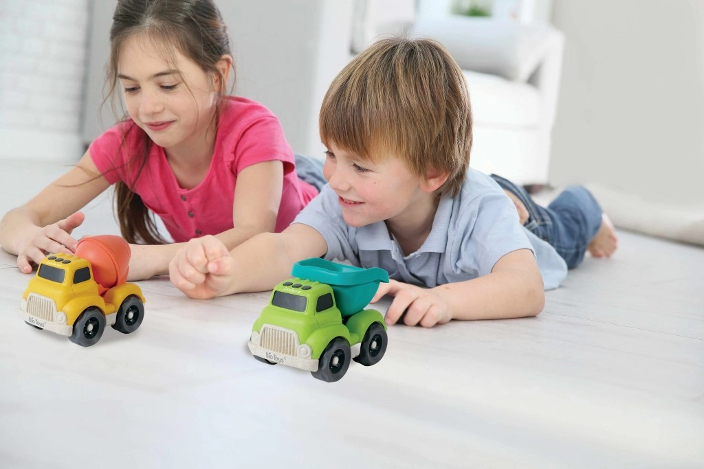 Scopri un set divertente e sicuro di camion da costruzione per i più piccoli: due veicoli robusti in bioplastica lunghi 18 cm. I giocattoli sono rispettosi dell’ambiente, hanno forme arrotondate e sicure per i bambini e parti funzionali per un gioco realistico (tambo del miscelatore e cassone ribaltabile). Ideali per bambini dai 18 mesi, favoriscono motricità fine e grossolana e creatività immaginativa.