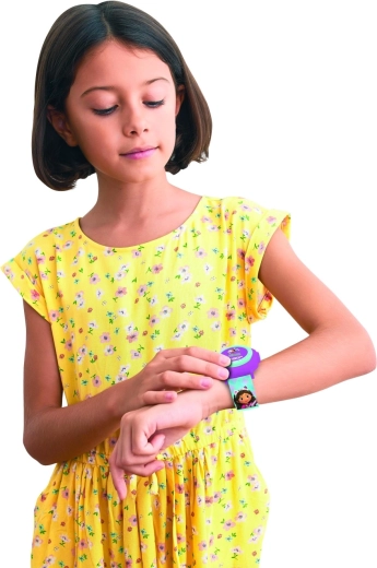 L’orologio ha un vivace design viola e menta con grafiche dei personaggi sul cinturino; è leggero, comodo e facile da usare anche dai più piccoli. Grazie al cinturino regolabile si adatta a diverse dimensioni di polso e, con le batterie incluse, funziona subito appena tolto dalla confezione.