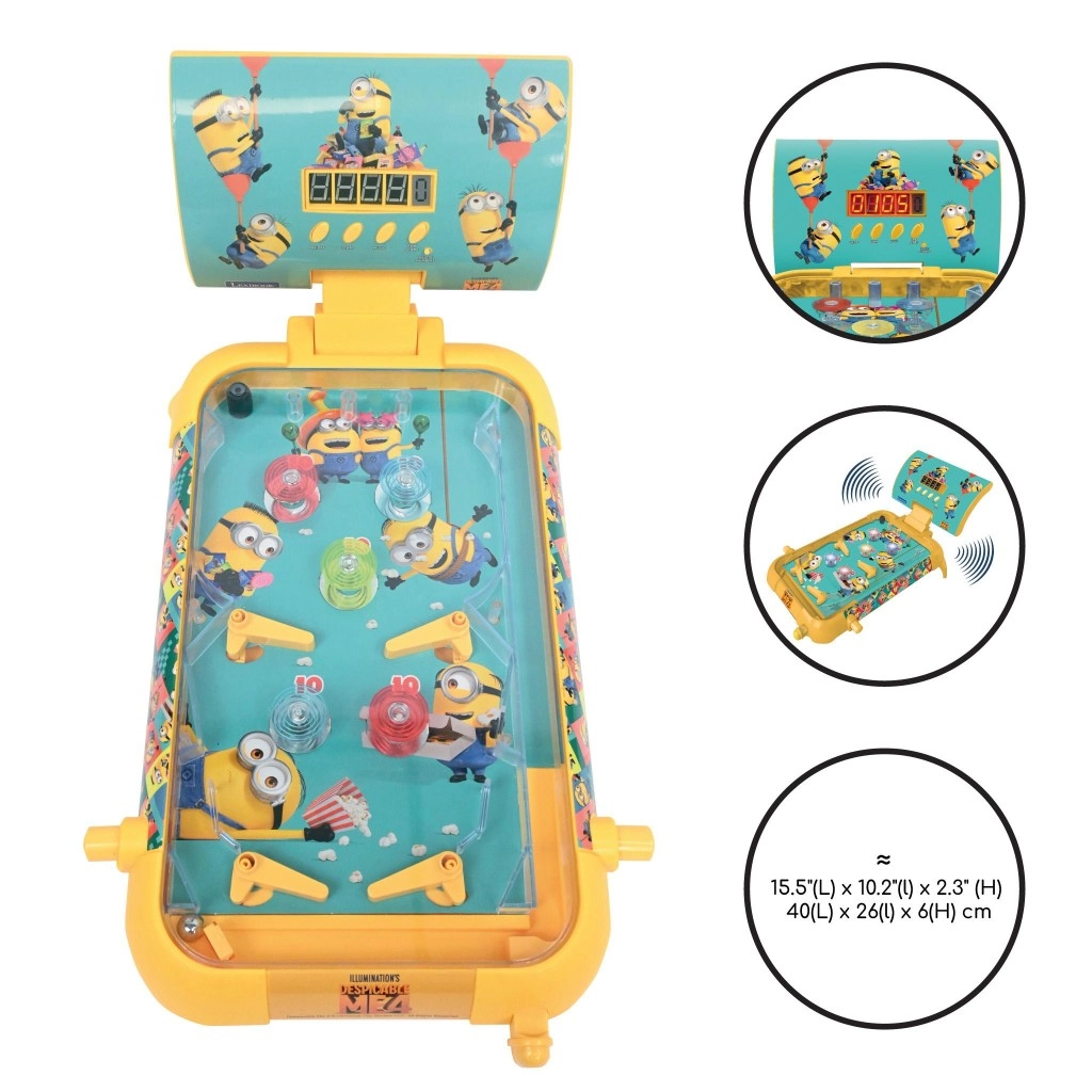 Goditi il divertimento arcade a casa con il flipper elettronico da tavolo Lexibook con tema MINIONS. Il gioco compatto per bambini dai 5 anni offre effetti luminosi, suoni e contatore digitale del punteggio per partite emozionanti ovunque. Struttura resistente, comandi semplici e il tema amato del film Cattivissimo Me faranno felici giocatori piccoli e grandi.
