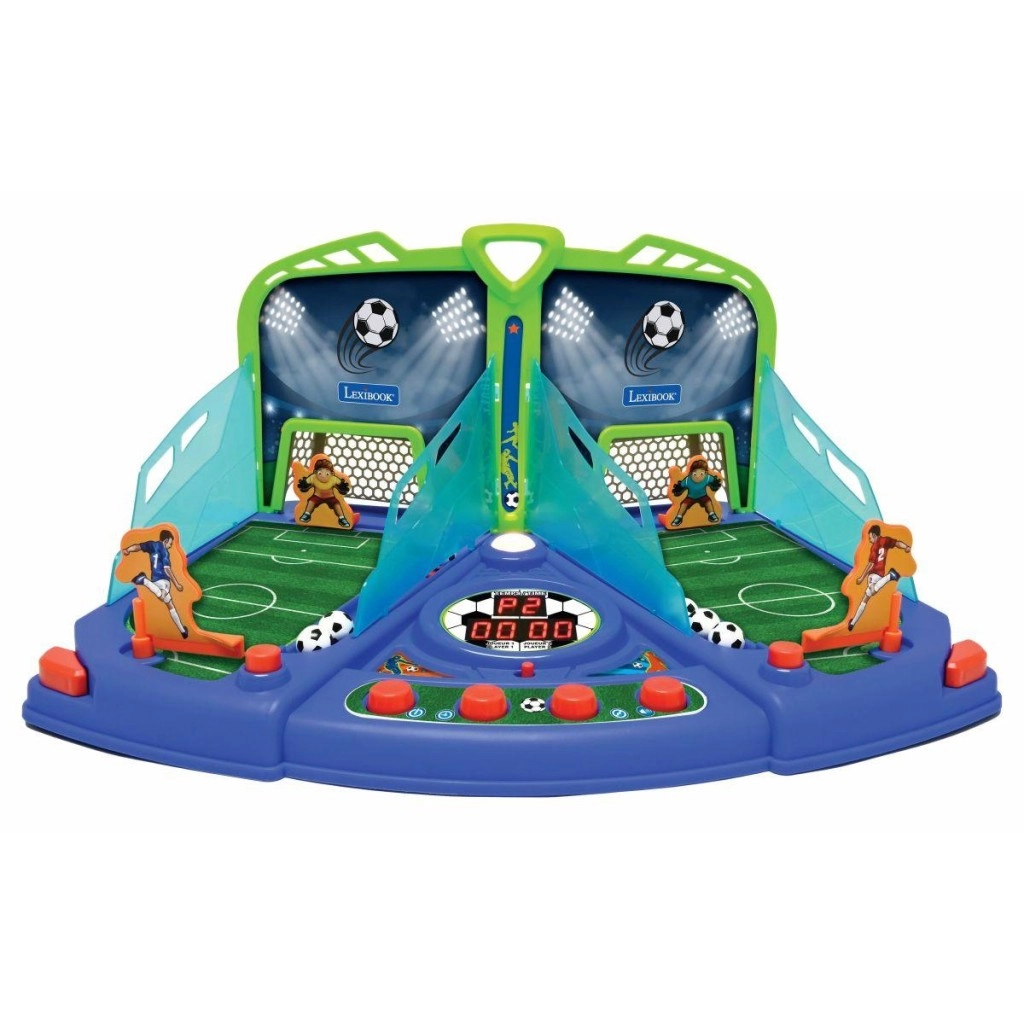 Il calcio da tavolo elettronico LEXIBOOK offre un gameplay dinamico e un’atmosfera realistica di partita grazie a illuminazione LED, effetti sonori e a un pannello digitale centrale per visualizzare punteggio e tempo. Due campi separati con porte, omini e portieri creano condizioni eque per sfide avvincenti.