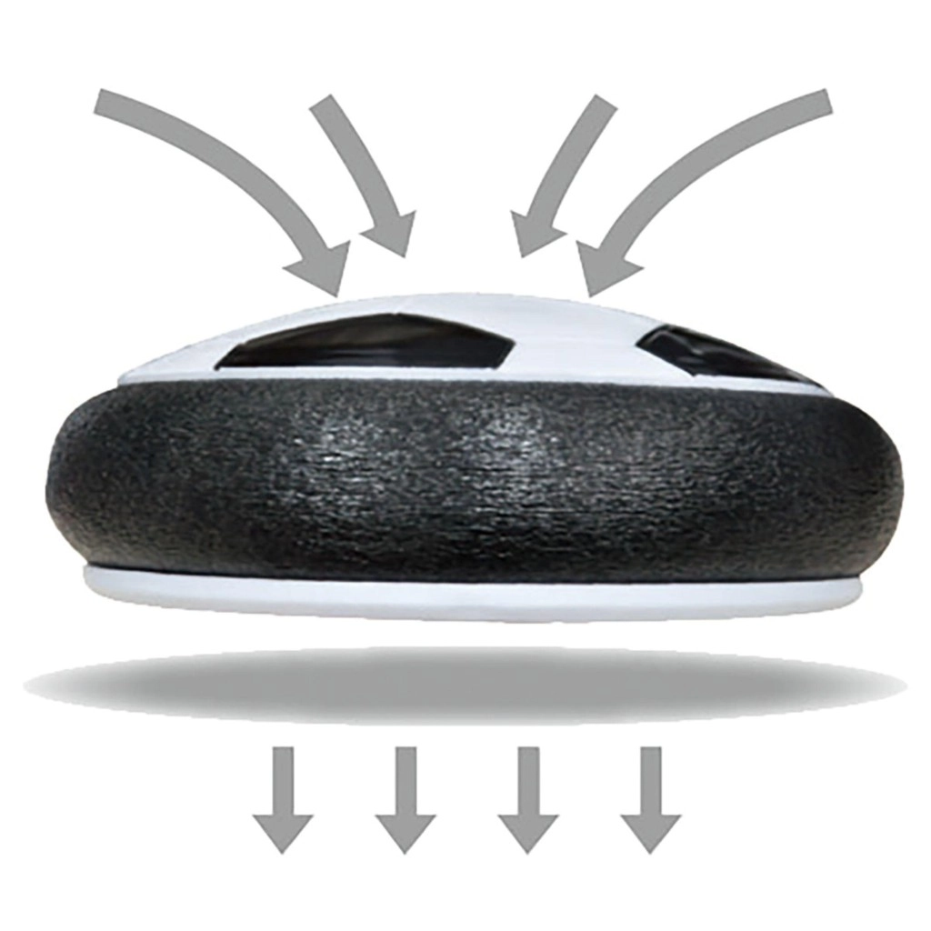 Disco hover aerodinamico con effetti luminosi e paracolpi in schiuma per proteggere i mobili. Perfetto per superfici lisce in interni.
