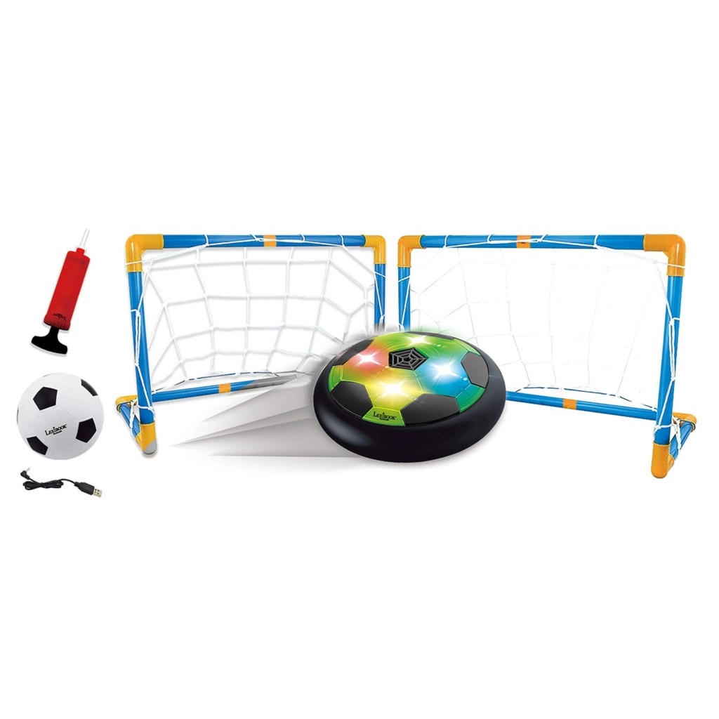 Calcio LED interattivo in casa e all'aperto – leggero disco scorrevole con paracolpi in schiuma che protegge i mobili, illuminazione LED multicolore per il divertimento anche al crepuscolo e batteria NiMH ricaricabile. Nella confezione trovi anche 2 porte portatili, 2 palloni gonfiabili e una pompa per iniziare subito a giocare.
