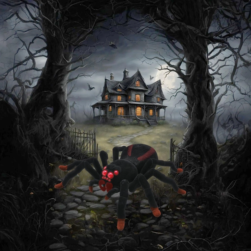 Una tarantola dettagliata con corpo in morbido peluche e numerosi occhi LED che, quando si accendono, amplificano l’atmosfera spettrale durante il gioco e gli scherzi.