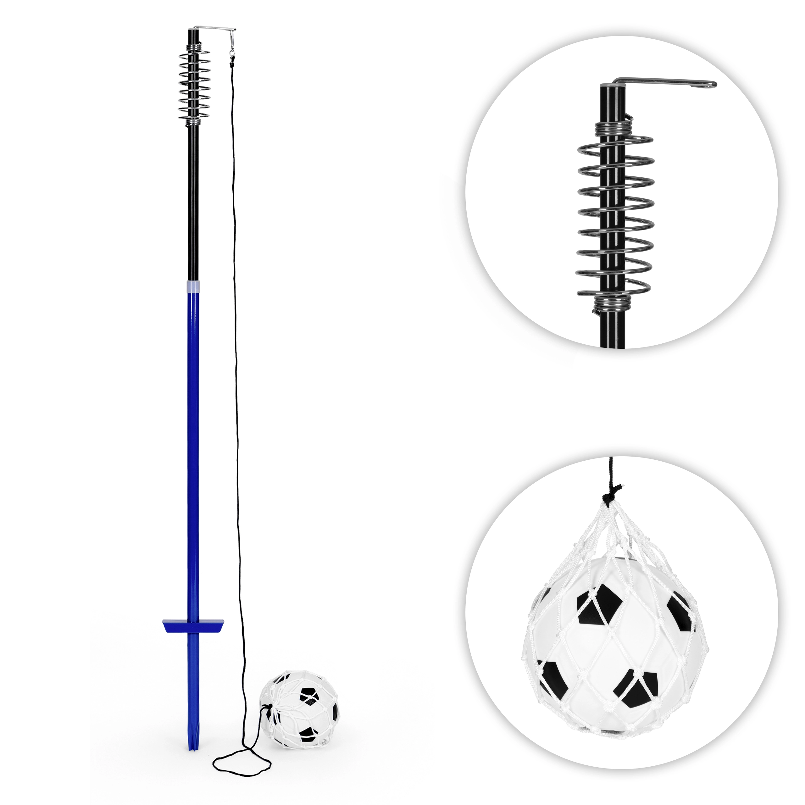 Il set MOVEPRO unisce divertimento attivo e allenamento efficace delle abilità calcistiche. Grazie al fissaggio elastico del pallone su corda, dopo ogni calcio torna indietro, così puoi ripetere gli esercizi senza correre inutilmente. La struttura in acciaio resistente agli agenti atmosferici e la stabile ancora da terra garantiscono un uso sicuro per bambini dai 5 anni e adulti.