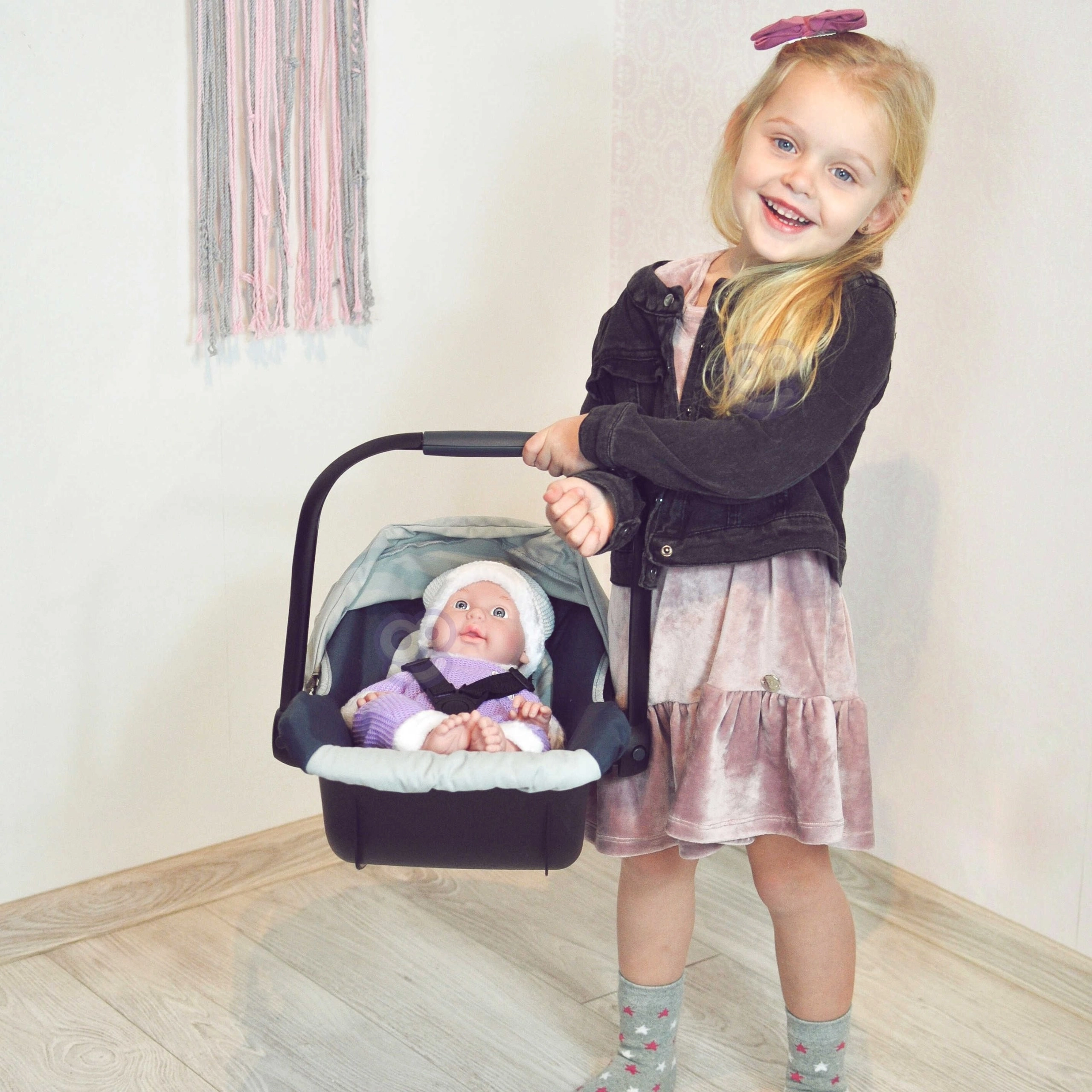 Il marsupio è progettato per bambole di 33–48 cm ed è dotato di cintura a tre punti per un fissaggio sicuro. Il manico regolabile permette ai bambini di adattare la presa e trasportare facilmente la bambola. Il rivestimento può essere rimosso e lavato, per un gioco sempre pulito.