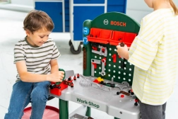 Questo banco da lavoro per bambini con licenza BOSCH, completamente accessoriato, trasforma la cameretta in una piccola officina. Un’organizzazione ordinata è garantita dal pannello posteriore forato con ganci, dalla mensola sotto il piano e da 3 pratici box per i piccoli oggetti. Non manca neppure la morsa funzionante per bambini per fissare saldamente i pezzi e un piano di lavoro stabile.