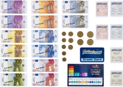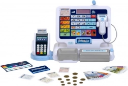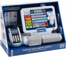 cassa con scanner, terminale di pagamento, bilancia (eventualmente soldi e carte da gioco a seconda del set)