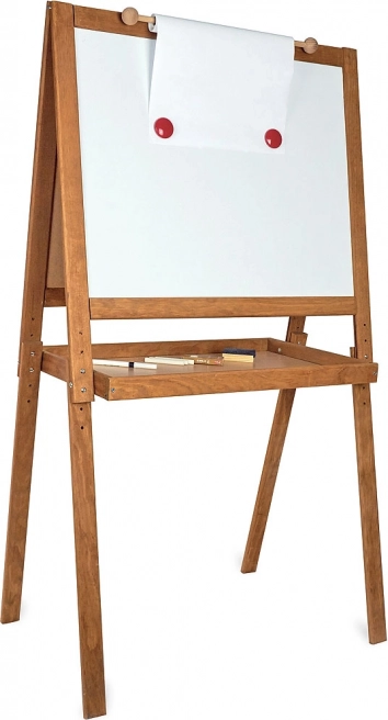 La lavagna a doppia faccia di Vilac è uno strumento ideale per lo sviluppo della creatività e dell'istruzione dei bambini. Un lato offre una superficie nera per il disegno col gesso, mentre l'altro è magnetico e adatto per pennarelli. Grazie alla robusta cornice in legno, offre stabilità e sicurezza durante l'uso. La lavagna ha anche un'altezza regolabile che si adatta alle esigenze dei tuoi bambini fino a 120 cm.
