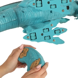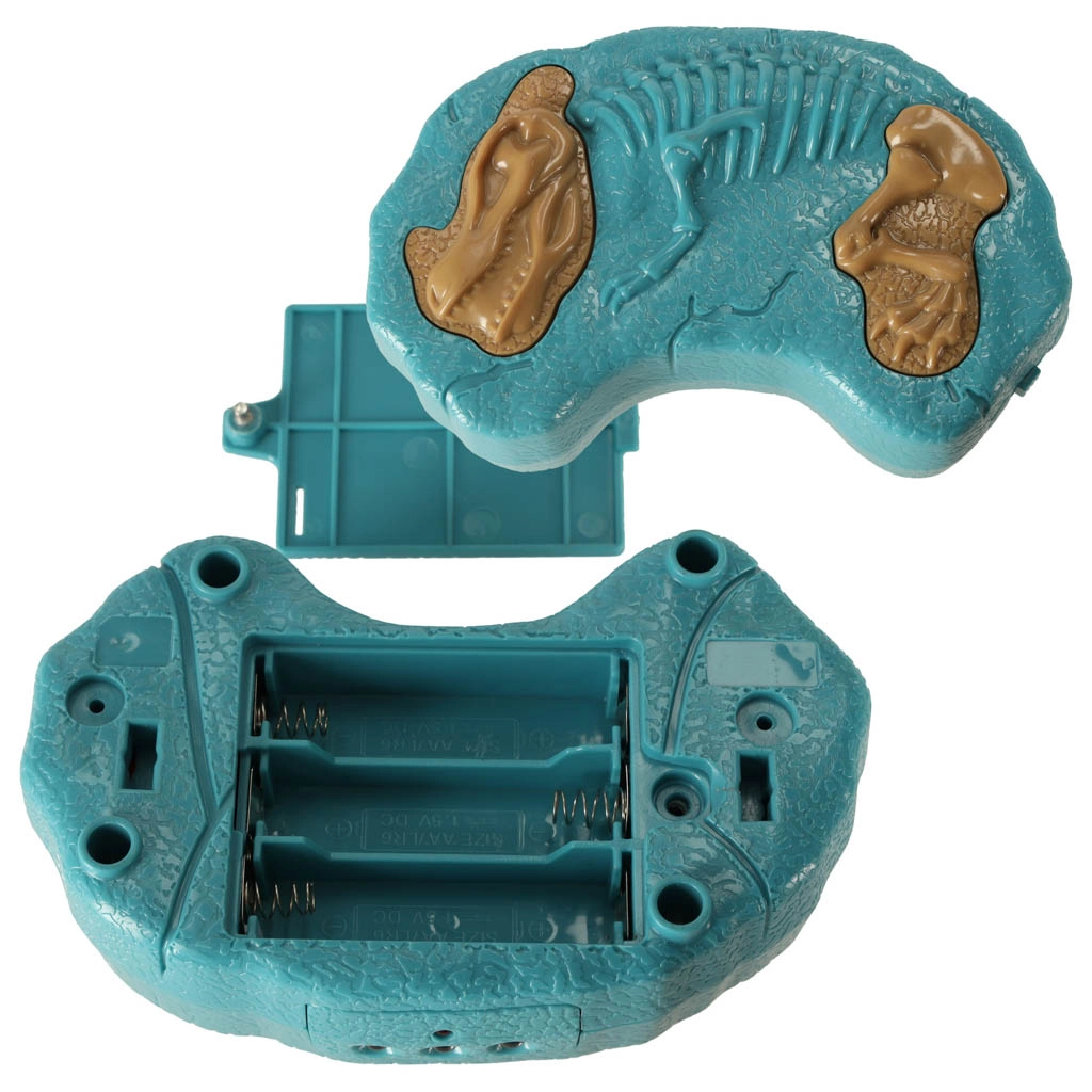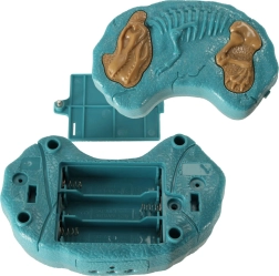 Il telecomando che ricorda un fossile con due pulsanti facilita il controllo dei movimenti e dei suoni del dinosauro.