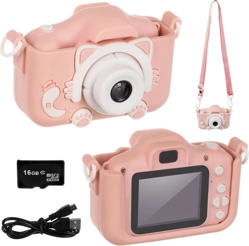 La fotocamera per bambini Kruzzel stimola creatività e divertimento: scatta foto e registra video in Full HD con audio, offre filtri e cornici, scatto a raffica e un controllo semplice per bambini dai 3 anni. Inclusi una scheda da 16GB e una custodia protettiva in silicone a forma di gattino per un uso sicuro.