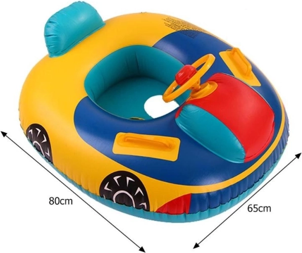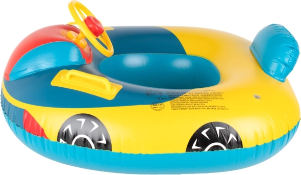 Il salvagente gonfiabile per bambini a forma di auto offre resistenza e sicurezza grazie al materiale PVC di qualità. È un aiuto ideale per l'introduzione dei bambini all'ambiente acquatico. Con volante girevole e clacson, i piccoli nuotatori si divertiranno ancora di più, e grazie al sedile speciale con fori, il bambino si sentirà al sicuro. Il design colorato e incantevole a forma di auto rende il prodotto attraente per i bambini.