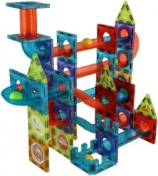 Vi presentiamo la pista di biglie magnetica, che consente di costruire qualsiasi pista secondo la vostra immaginazione o secondo le istruzioni incluse. I pezzi sono magnetici, il che facilita l'assemblaggio e garantisce la stabilità della costruzione.