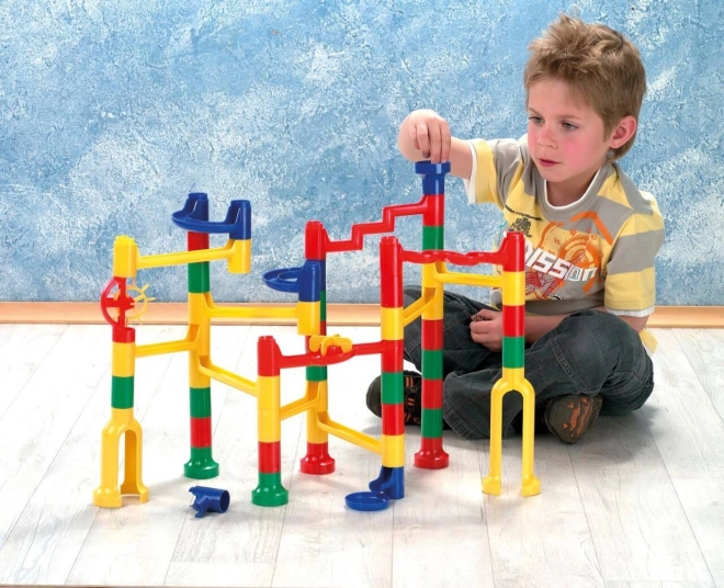 Questa pista per biglie del marchio LENA offre ore di divertimento grazie alla sua variabilità e ingegnosità. È ideale per bambini dai tre anni e offre molte possibilità di creare piste secondo la propria fantasia.
