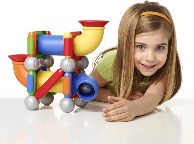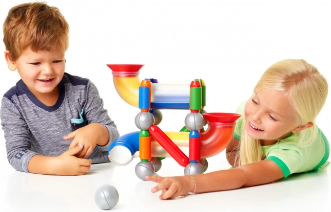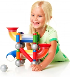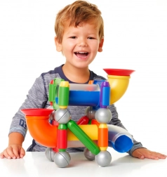 Goditi ore di divertimento creativo con il SmartMax Percorso per la Pallina. Questo set magnetico stimola l'immaginazione infantile attraverso il facile collegamento dei pezzi. Ogni pezzo si collega facilmente con un clic, permettendo di costruire diverse strutture come torri, ponti e altro.