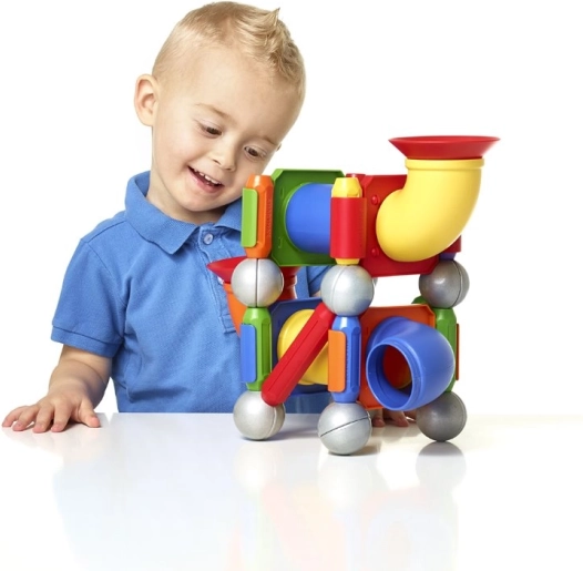 Permette una connessione facile e sicura dei pezzi per creare diverse strutture. I magneti affascinano i bambini piccoli e stimolano la loro curiosità.