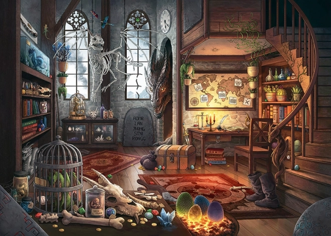 Preparati per un'avventura con Ravensburger Puzzle EXIT: Laboratorio del Drago, composto da 759 pezzi. Progettato per giocatori dai 12 anni in su, questo affascinante puzzle è ideale per ragazzi e ragazze attratti dal mondo della magia e dei misteri.