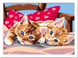 Diventate pittore per un momento e create il vostro quadro con il motivo dei gattini. Basta colorare progressivamente le aree numerate con i colori corrispondenti e osservare come prende forma un bellissimo lavoro davanti a voi. Il set comprende una robusta tela 24 × 18 cm con schema, un set di colori acrilici, un pennello di qualità, un supporto in cartone per i vasetti di colore e una cornice – così esporrete facilmente il quadro finito.