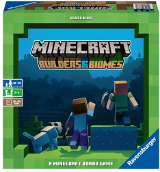 Ravensburger MINECRAFT: Builders & Biomes porta gli elementi di gioco preferiti del videogioco direttamente sul tuo tavolo. Esplora il tabellone, estrai legno, pietra e altre risorse, costruisci strutture uniche e accumula punti grazie a strategie ben congegnate. Ogni turno offre nuove scelte e occasioni per sorprendere gli avversari.