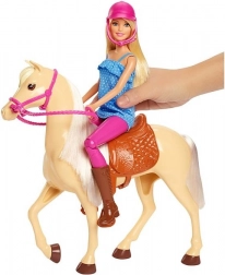 Cavallo con sella e briglie rosa, bambola con completo equestre e casco per un gioco autentico.
