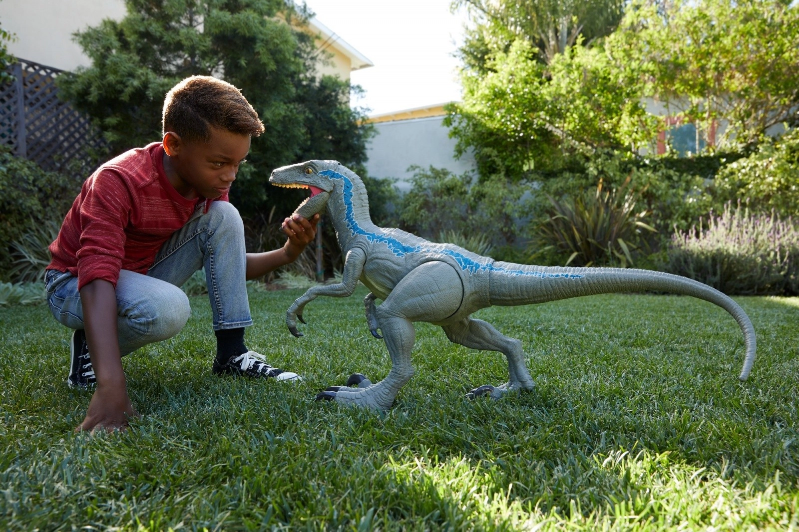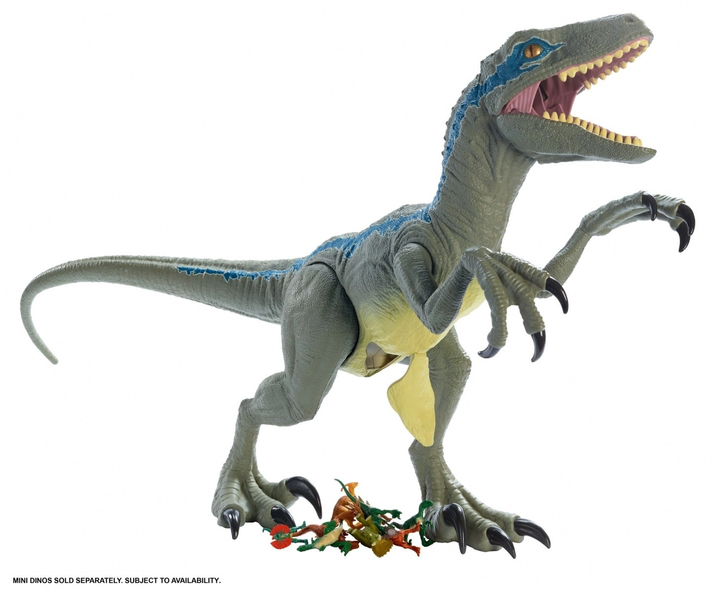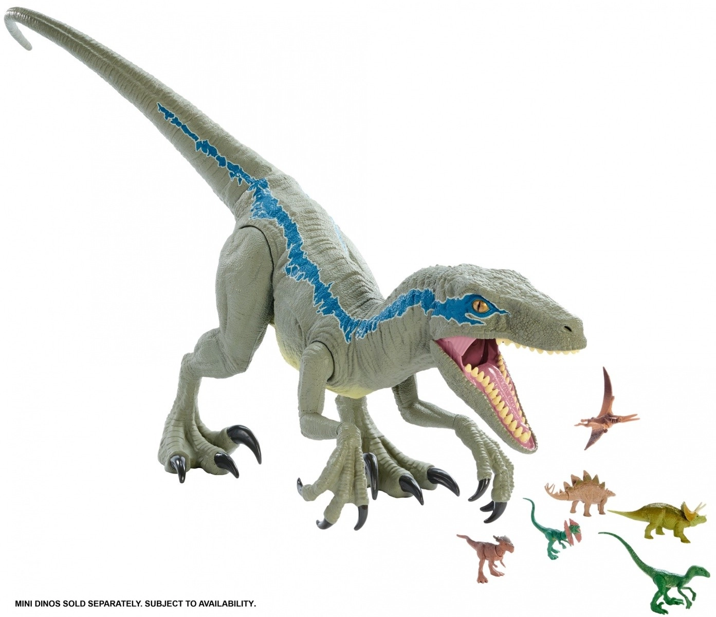Entra nel mondo di JURASSIC WORLD con la figure gigante di Blue! Questa impressionante eroina raptor misura circa 45 cm in altezza e 106 cm in lunghezza, con texture della pelle realistica, l’iconica striscia blu e molte articolazioni snodabili per un gioco d’azione. Grazie alle mascelle apribili e a uno sportellino abilmente nascosto sul ventre, Blue può “inghiottire” fino a 20 mini figure di dinosauri (vendute separatamente). Dettagli realistici, ampia libertà di movimento e suspense di gioco entusiasmeranno fan piccoli e grandi dei dinosauri.